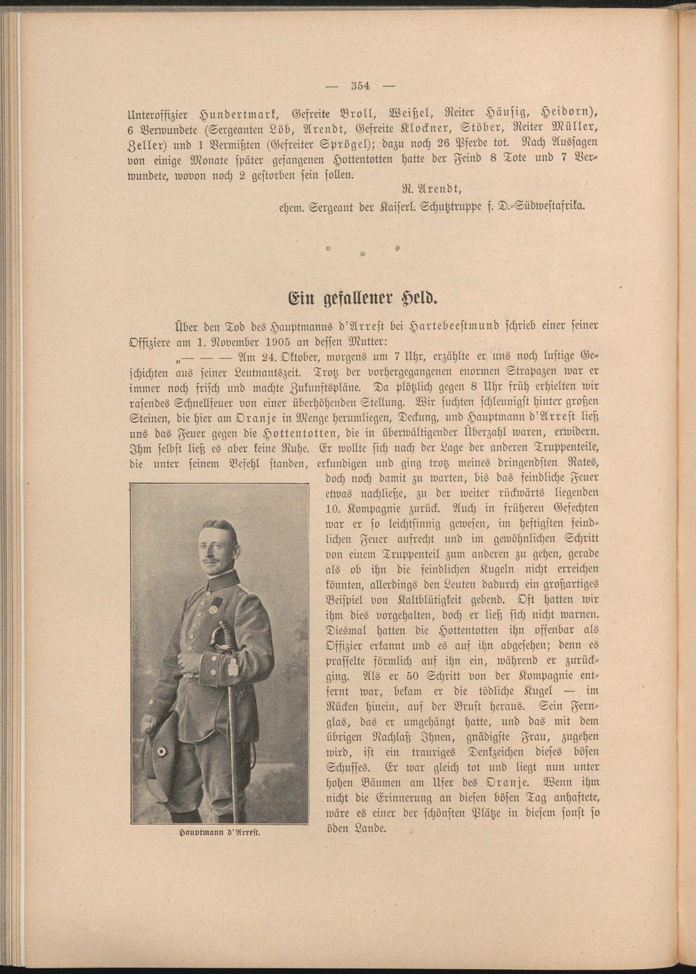 Über den Tod des Hauptmanns d'Arrest bei Hartebeestmund schrieb einer seiner Offiziere am 1. November 1905 an dessen Mutter: