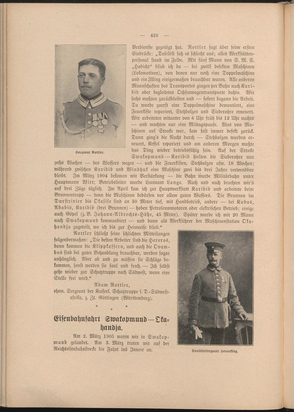 ehern. Sergeant der Kaiser!. Schutztruppe f. D.-Südwest- afrika, z. Zt. Göttingen (Württemberg).