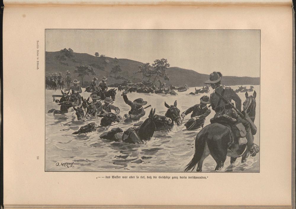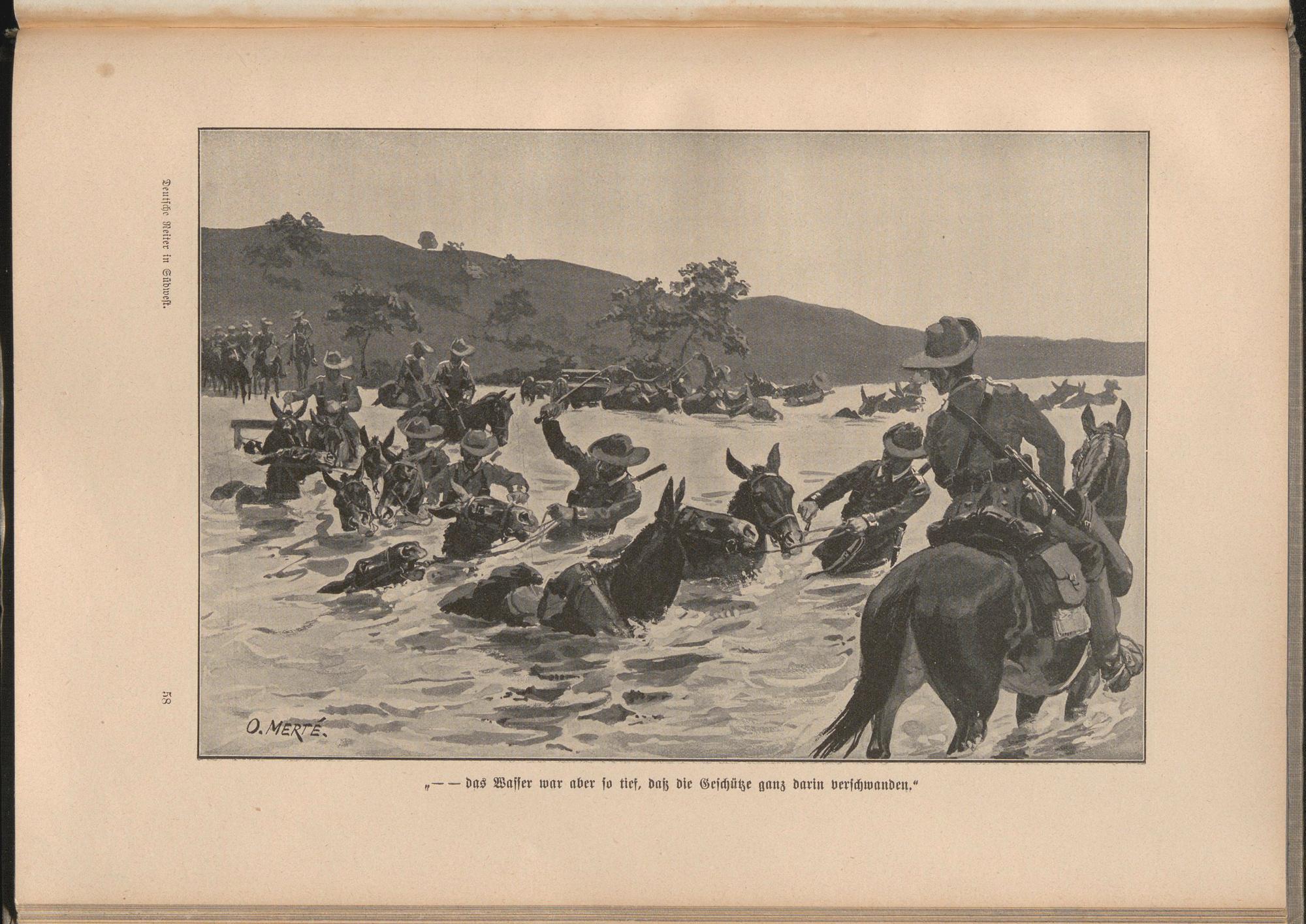 Deutsche Neiter in Südwest. das Wasser war aber so tief, das; die Geschütze ganz darin verschwanden ^«1