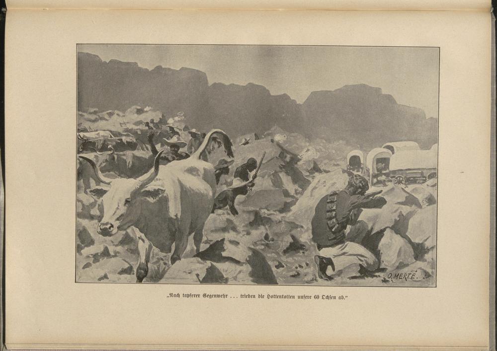 WM/ ' «W^ ' -> MSM LLEM-M ?r- W A' E U .Nach tapferer Gegenwehr ... trieben die Hottentotten unsere 60 Ochsen ab