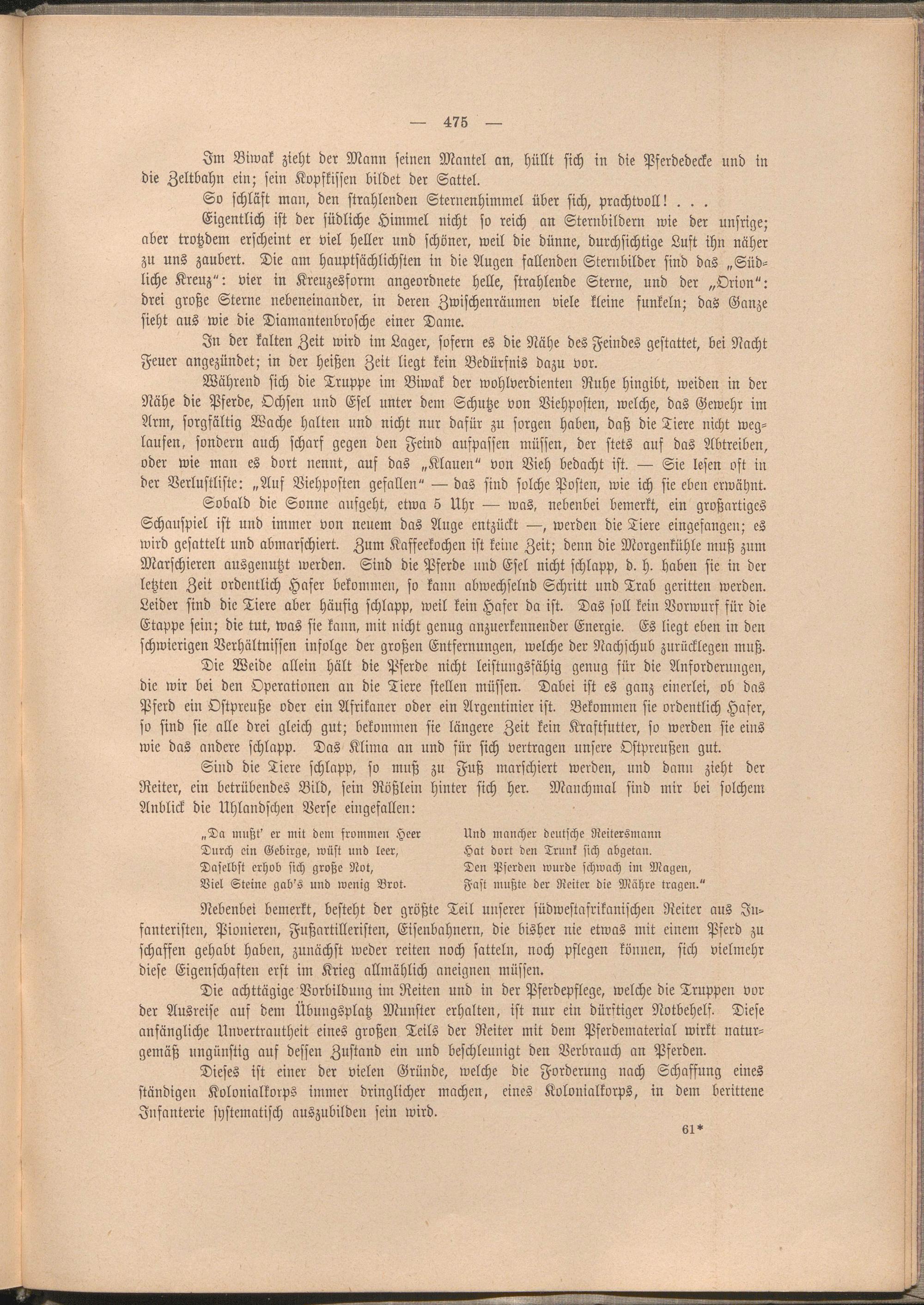 Dieses ist einer der vielen Gründe, welche die Forderung nach Schaffung eines ständigen Kolonialkorps immer dringlicher machen, eines Kolonialkorps, in dem berittene Infanterie systematisch auszubilden sein wird.