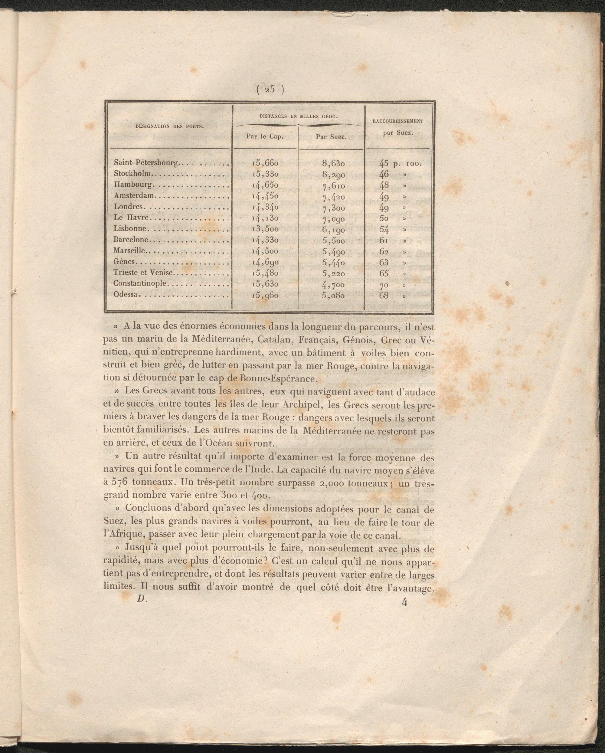 » Concluons d’abord qu’avec les dimensions adoptées pour le canal de Suez, les plus grands navires à voiles pourront, au lieu de foire le tour de l’Afrique, passer avec leur plein chargement par la voie de ce canal.