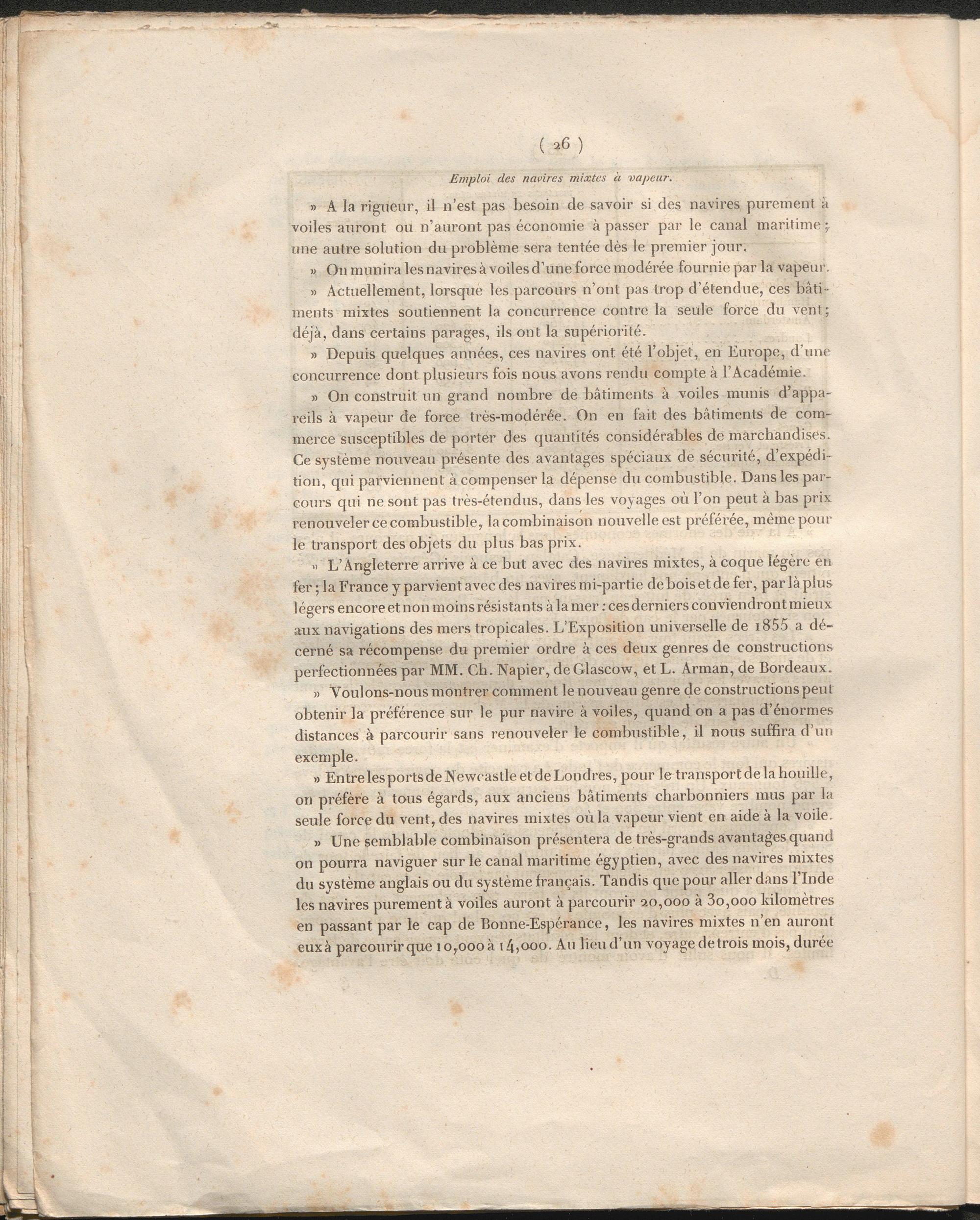 » Depuis quelques années, ces navires ont été l’objet, en Europe, d’une concurrence dont, plusieurs fois nous avons rendu compte à l’Académie.