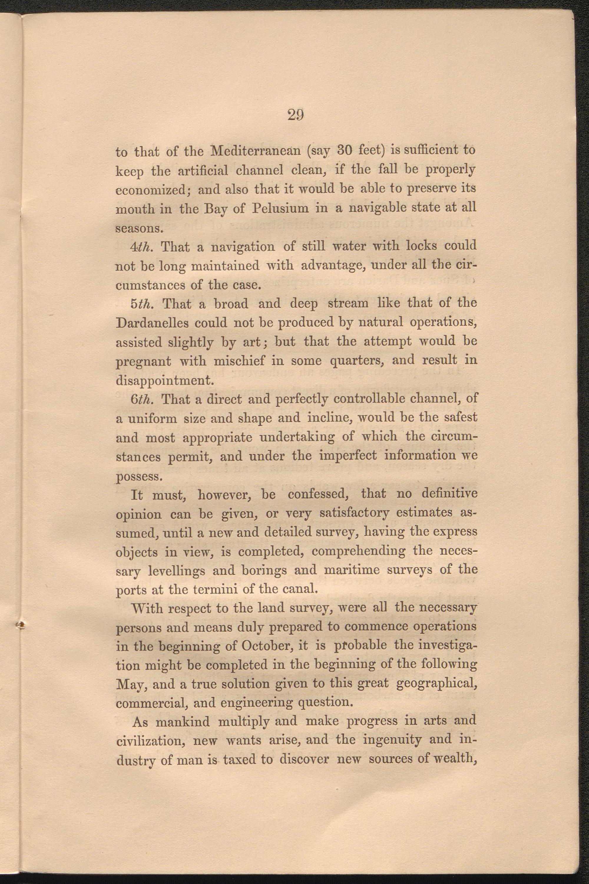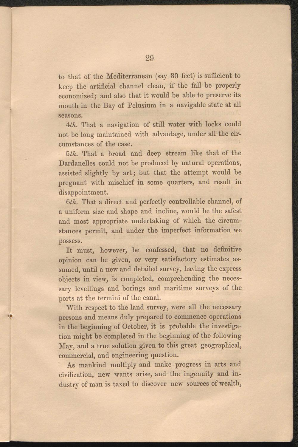 With respect to the land survey, were all the necessary persons and means duly prepared to commence operations in the beginning of October, it is probable the investigation might be completed in the beginning of the following May, and a true solution given to this great geographical, commercial, and engineering question.