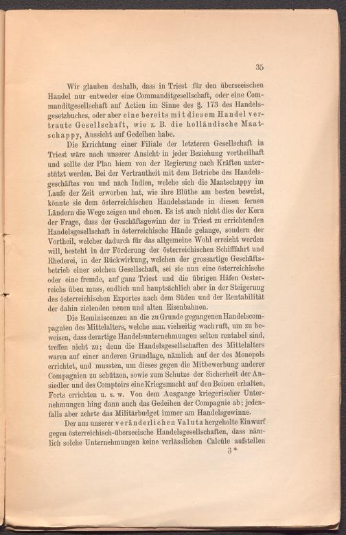 Der aus unserer veränderlichenValuta hergeholte Einwurf gegen österreichisch-überseeische Handelsgesellschaften, dass nämlich solche Unternehmungen keine verlässlichen Calcüle aufstellen
