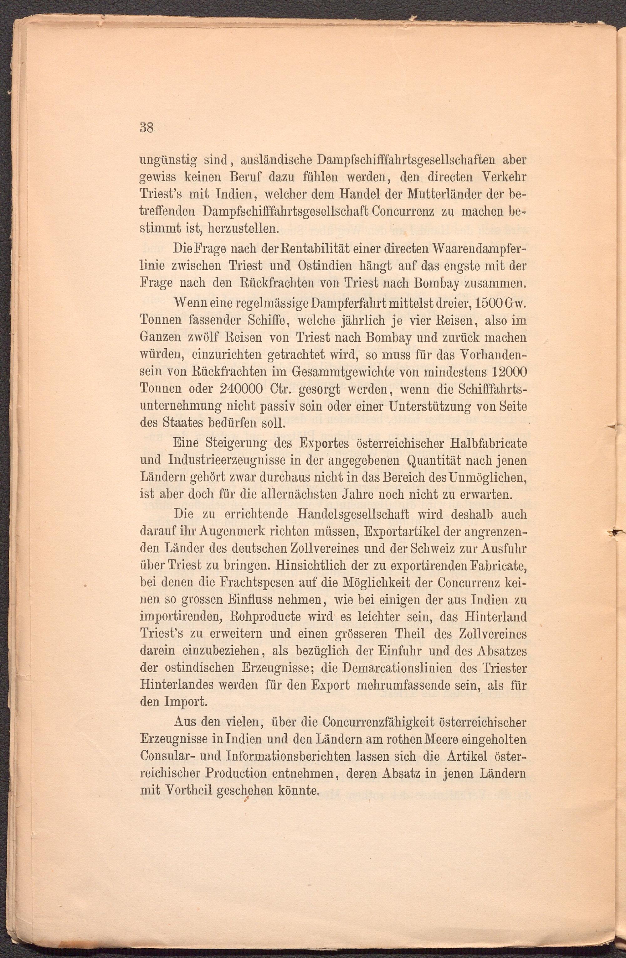 Die Frage nach der Rentabilität einer directen Waarendampfer- linie zwischen Triest und Ostindien hängt auf das engste mit der Frage nach den Rückfrachten von Triest nach Bombay zusammen.