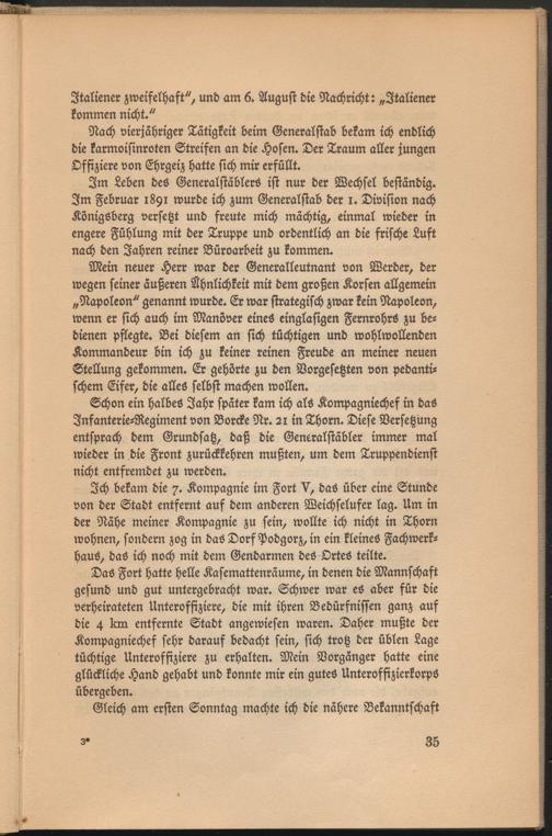 Im Leben des Generalstäblers ist nur der Wechsel beständig. Im Februar 1891 wurde ich zum Generalstab der l. Division nach Königsberg versetzt und freute mich mächtig, einmal wieder in engere Fühlung mit der Truppe und ordentlich an die frische Luft nach den Jahren reiner Büroarbeit zu kommen.