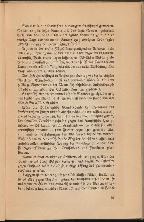 Natürlich fehlt es nicht an Kritikern, die den ganzen Plan des Durchmarschs durch Belgien verwerfen und sagen, die Offensive gegen Rußland wäre die einzig richtige Lösung des Zweifronten- problems gewesen.