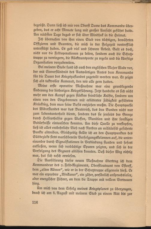 Bei meinem Stäbe fand ich auch den englischen Major Wade vor, der mit Einverständnis des Auswärtigen Amtes dem Kommando für die Dauer des Kriegszustandes zugeteilt worden war. Er zeigte sich als taktvoller Kamerad, den wir alle gern hatten.