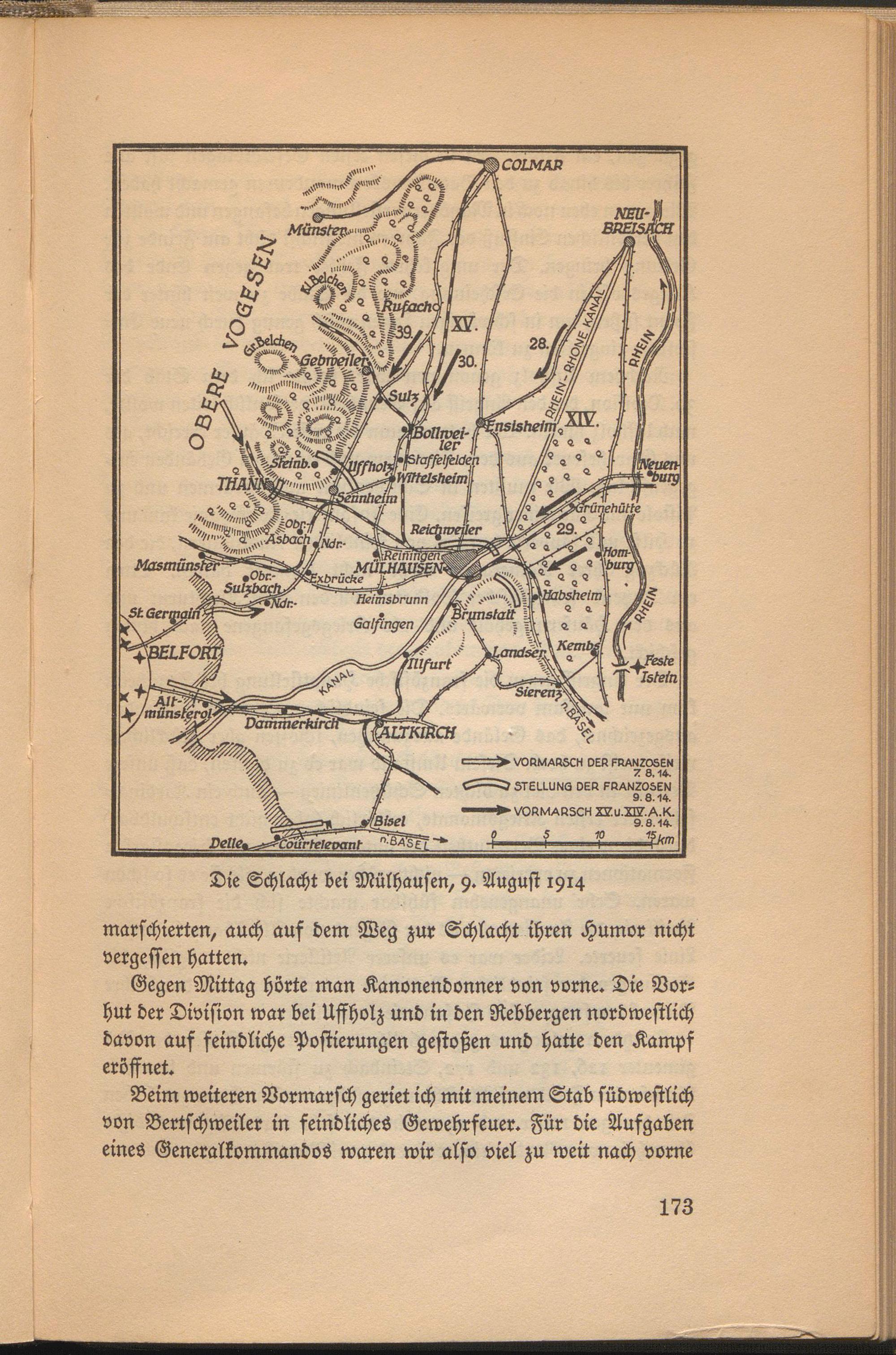 Beim weiteren Vormarsch geriet ich mit meinem Stab südwestlich von Bertschweiler in feindliches Gewehrfeuer. Für die Aufgaben eines Generalkommandos waren wir also viel zu weit nach vorne