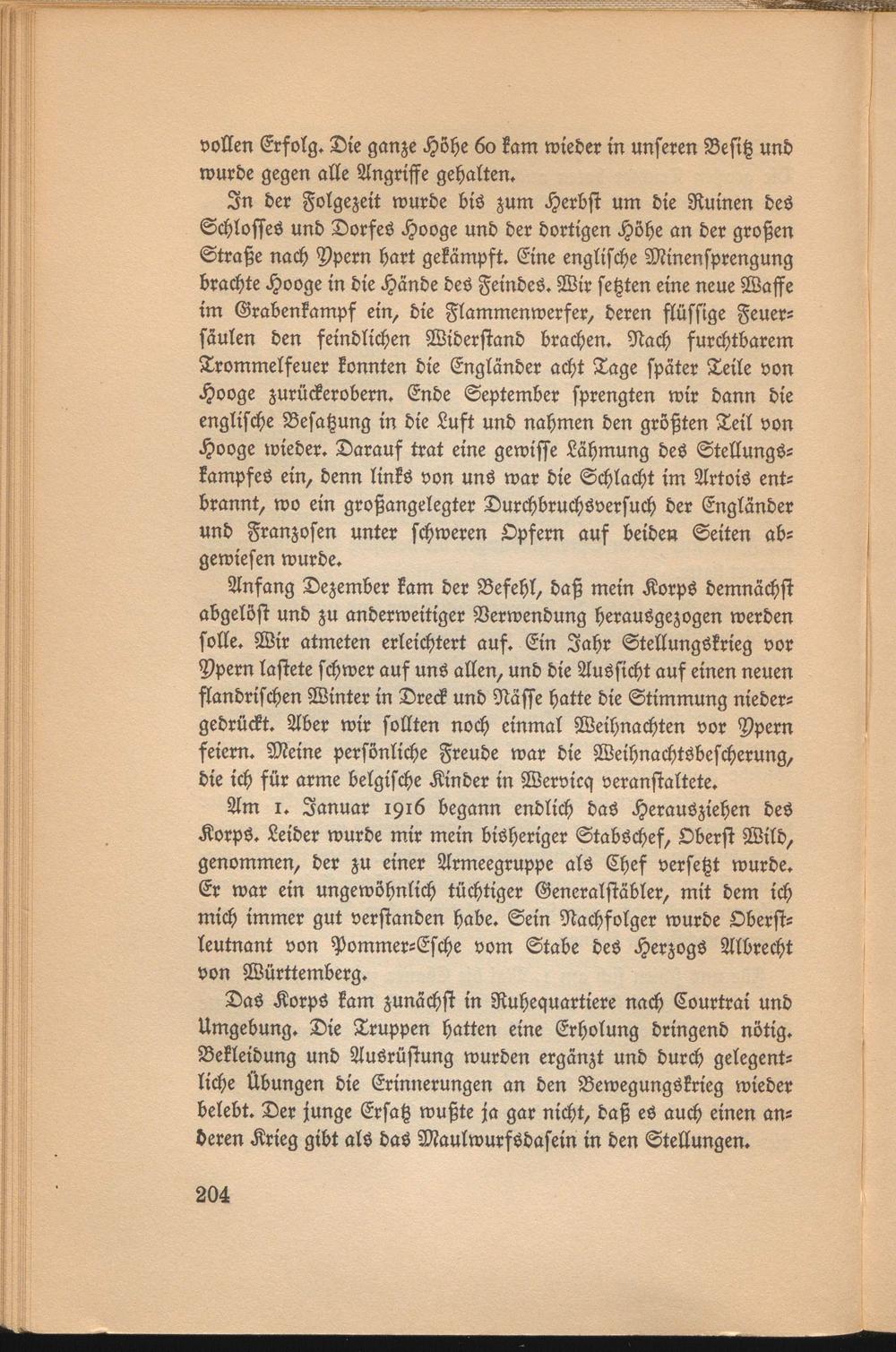 Am i. Januar 1916 begann endlich das Herausziehen des KorpS. Leider wurde mir mein bisheriger Stabschef, Oberst Wild, genommen, der zu einer Armeegruppe als Chef versetzt wurde. Er war ein ungewöhnlich tüchtiger Generalstäbler, mit dem ich mich immer gut verstanden habe. Sein Nachfolger wurde Oberstleutnant von Pommer-Esche vom Stäbe des Herzogs Albrecht von Württemberg.