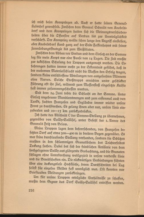 Ich hatte den Abschnitt 6 der Somme-Stellung zu übernehmen, gegenüber von Sailly-Saillisel, unter Befehl der i. Armee des Generals Fritz von Below.