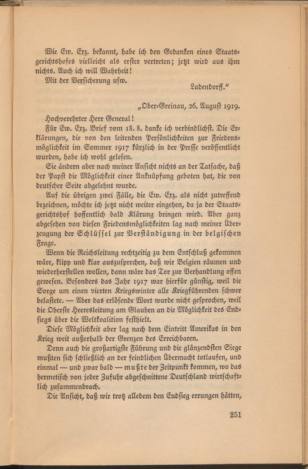 Für Ew. Exz. Brief vom 18. 8. danke ich verbindlichst. Die Erklärungen, die von den leitenden Persönlichkeiten zur Friedensmöglichkeit im Sommer 1917 kürzlich in der Presse veröffentlicht wurden, habe ich wohl gelesen.