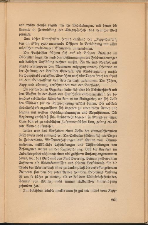 Aus dieser Atmosphäre heraus entstand der „Kapp-Putsch", den im März 1920 meuternde Offiziere in Verbindung mit allen möglichen reaktionären Elementen unternahmen.