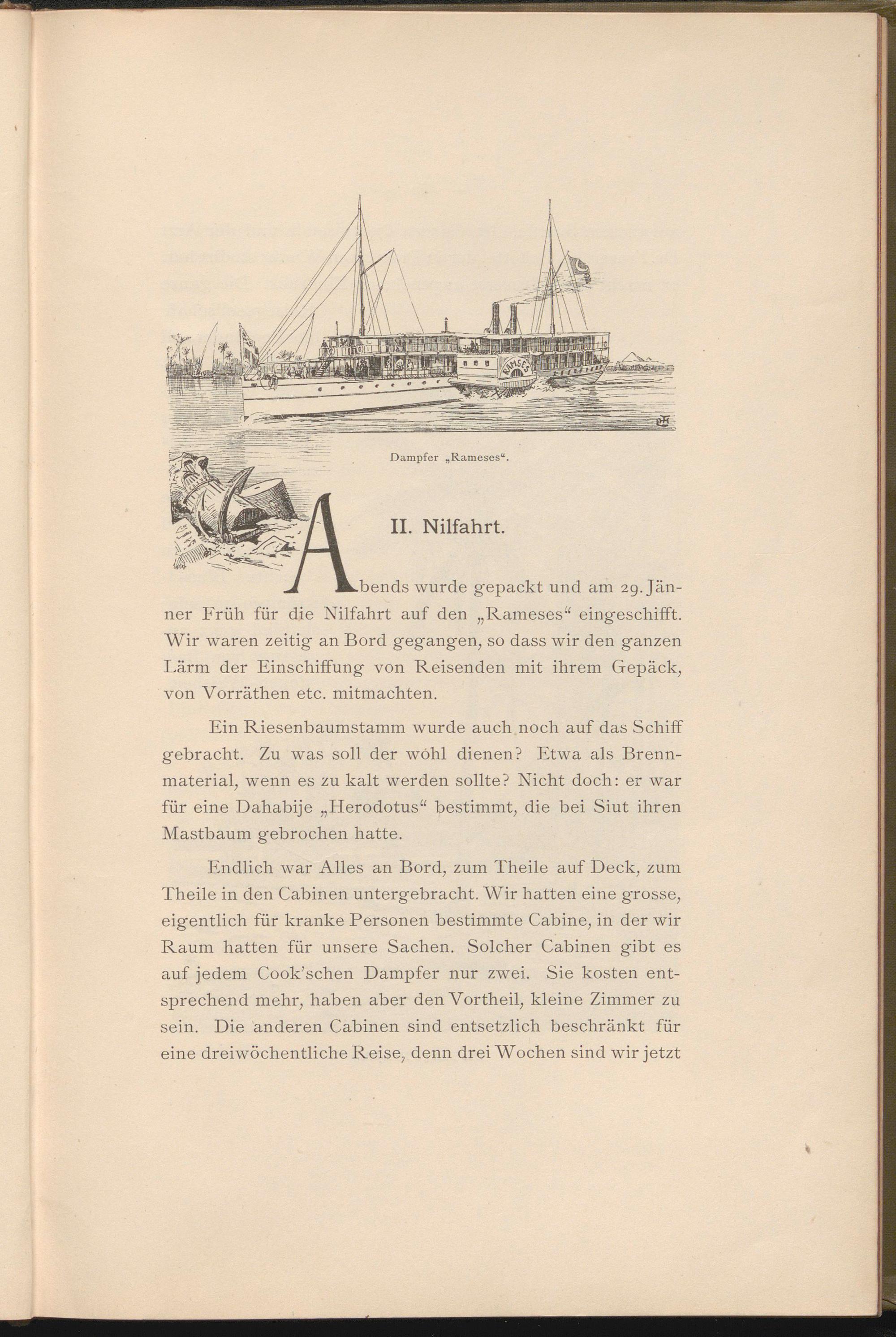 ner Früh für die Nilfahrt auf den „Rameses“ eingeschifft. Wir waren zeitig an Bord gegangen, so dass wir den ganzen Lärm der Einschiffung von Reisenden mit ihrem Gepäck, von Vorräthen etc. mitmachten.