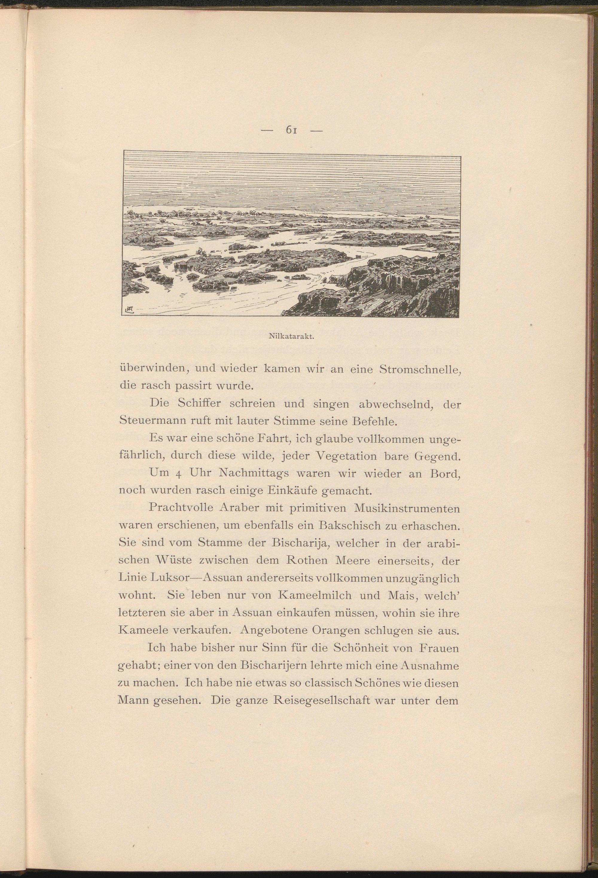 Ich habe bisher nur Sinn für die Schönheit von Frauen gehabt; einer von den Bischarijern lehrte mich eine Ausnahme zu machen. Ich habe nie etwas so classisch Schönes wie diesen Mann gesehen. Die ganze Reisegesellschaft war unter dem