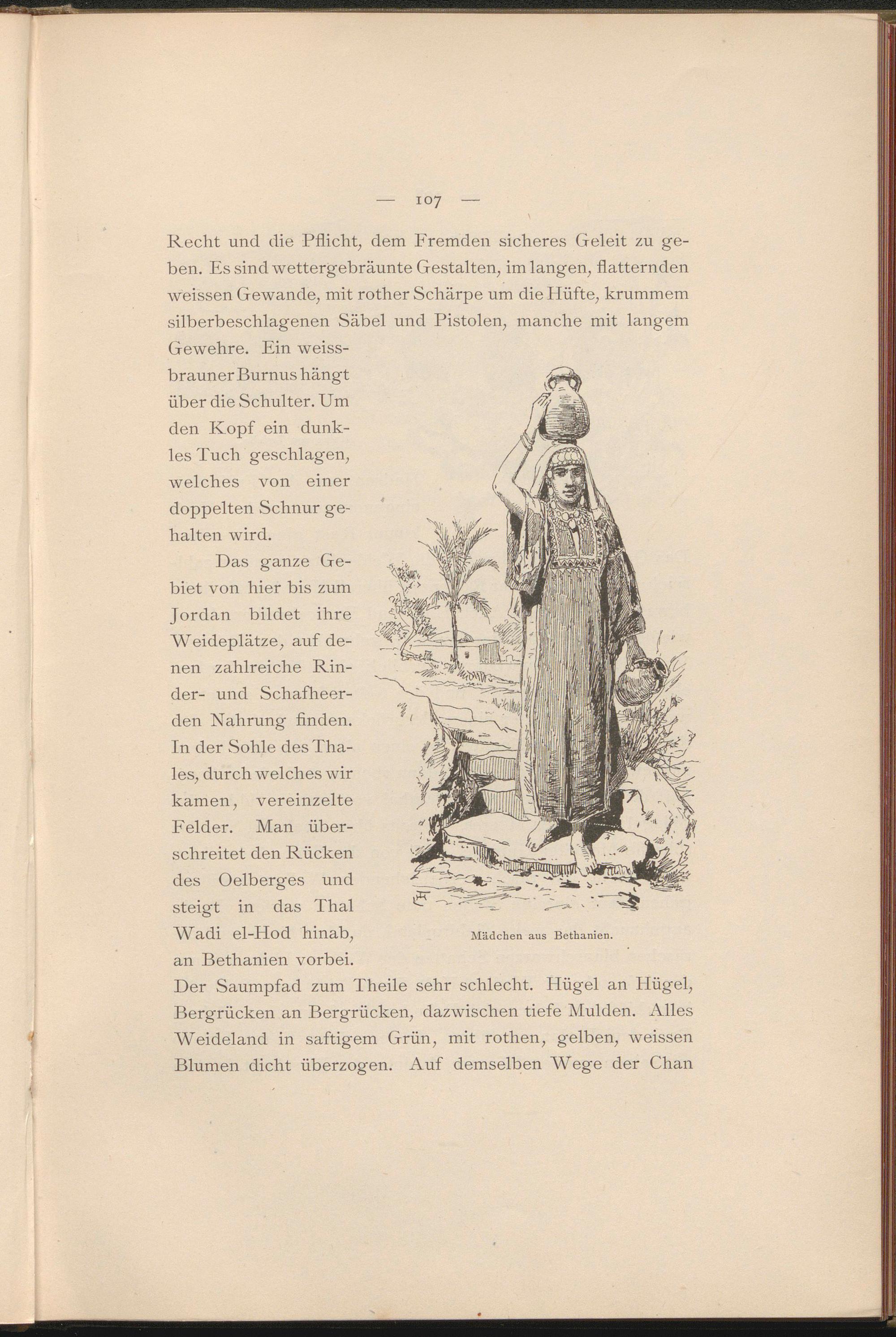In der Sohle des Thaies, durch welches wir kamen, vereinzelte Felder. Man überschreitet den Rücken des Oelberges und steigt in das Thal Wadi el-Hod hinab, an Bethanien vorbei.