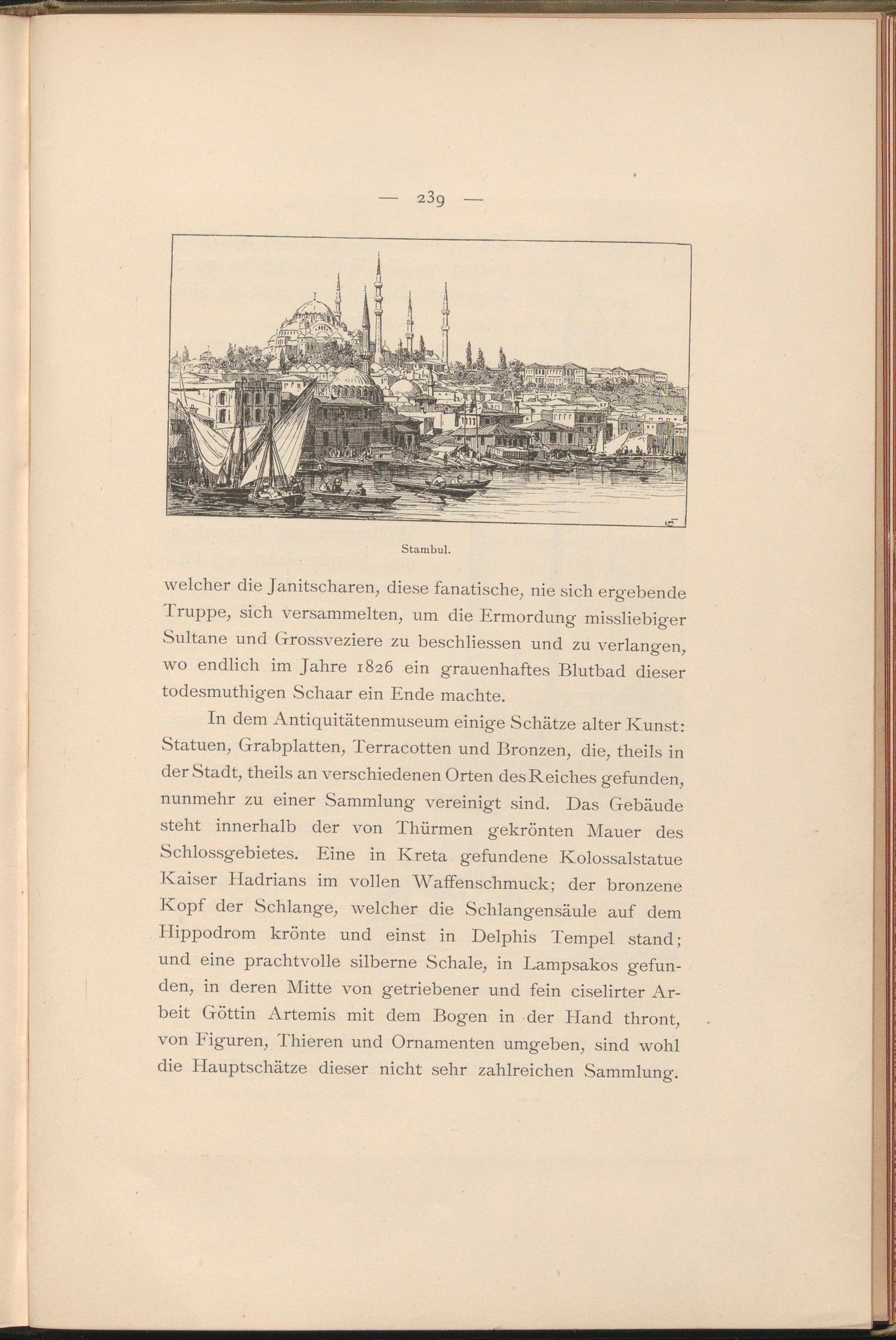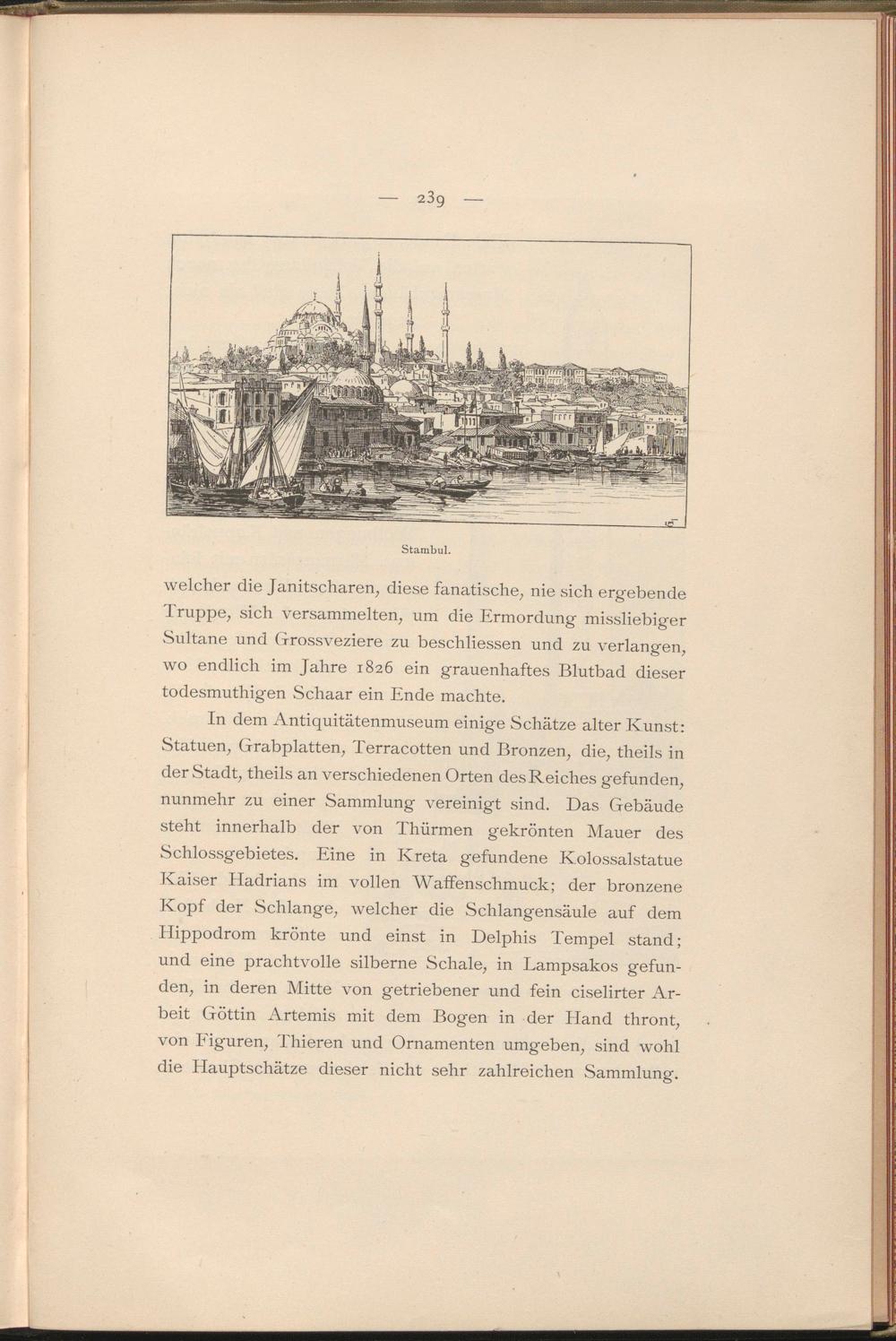 welcher die Janitscharen, diese fanatische, nie sich ergebende Truppe, sich versammelten, um die Ermordung missliebiger Sultane und Grossveziere zu beschliessen und zu verlangen, wo endlich im Jahre 1826 ein grauenhaftes Blutbad dieser todesmuthigen Schaar ein Ende machte.