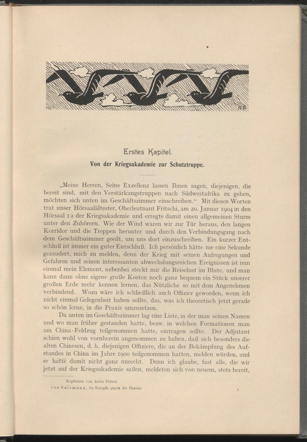 Kopfleiste von Anita Peters, von Salzmann. Im Kampfe gegen die Herero.