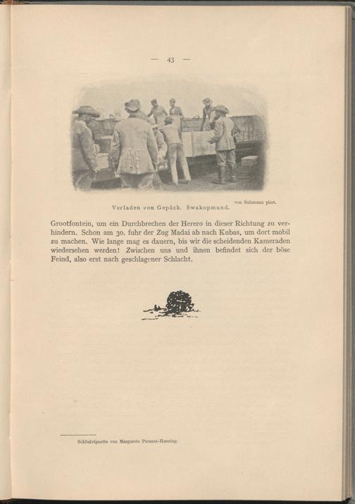 Grootfontein, um ein Durchbrechen der Herero in dieser Richtung zu verhindern. Schon am 30. fuhr der Zug Madai ab nach Kubas, um dort mobil zu machen. Wie lange mag es dauern, bis wir die scheidenden Kameraden Wiedersehen werden! Zwischen uns und ihnen befindet sich der böse Feind, also erst nach geschlagener Schlacht.