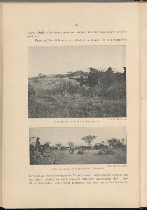 der noch auf See schwimmenden Verstärkungen aufgeschoben werden und wir damit wieder zu wochenlangem Stilliegen gezwungen sind. Am 18. verabschiedete sich Oberst Leutwein von uns, um nach Okahandja
