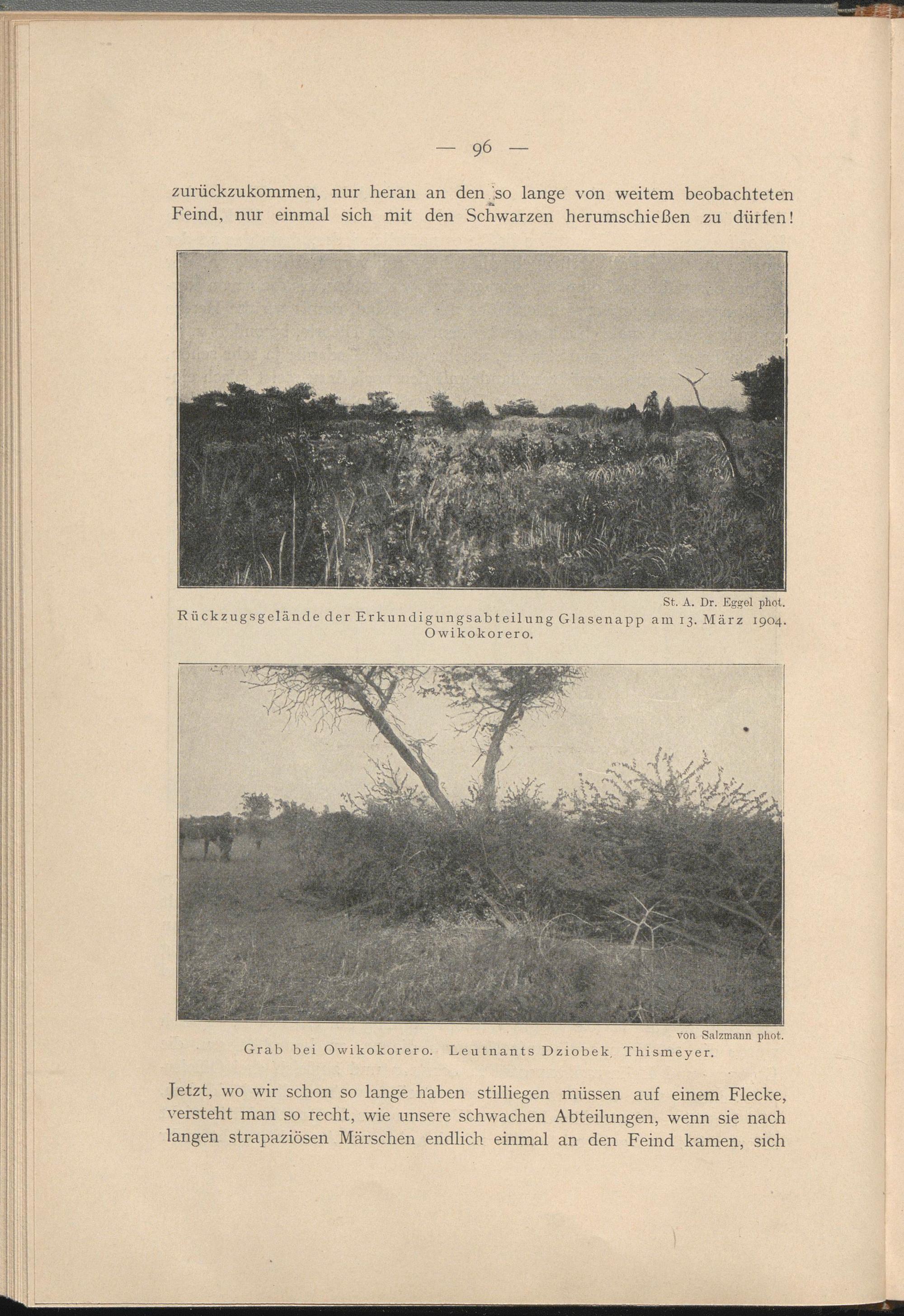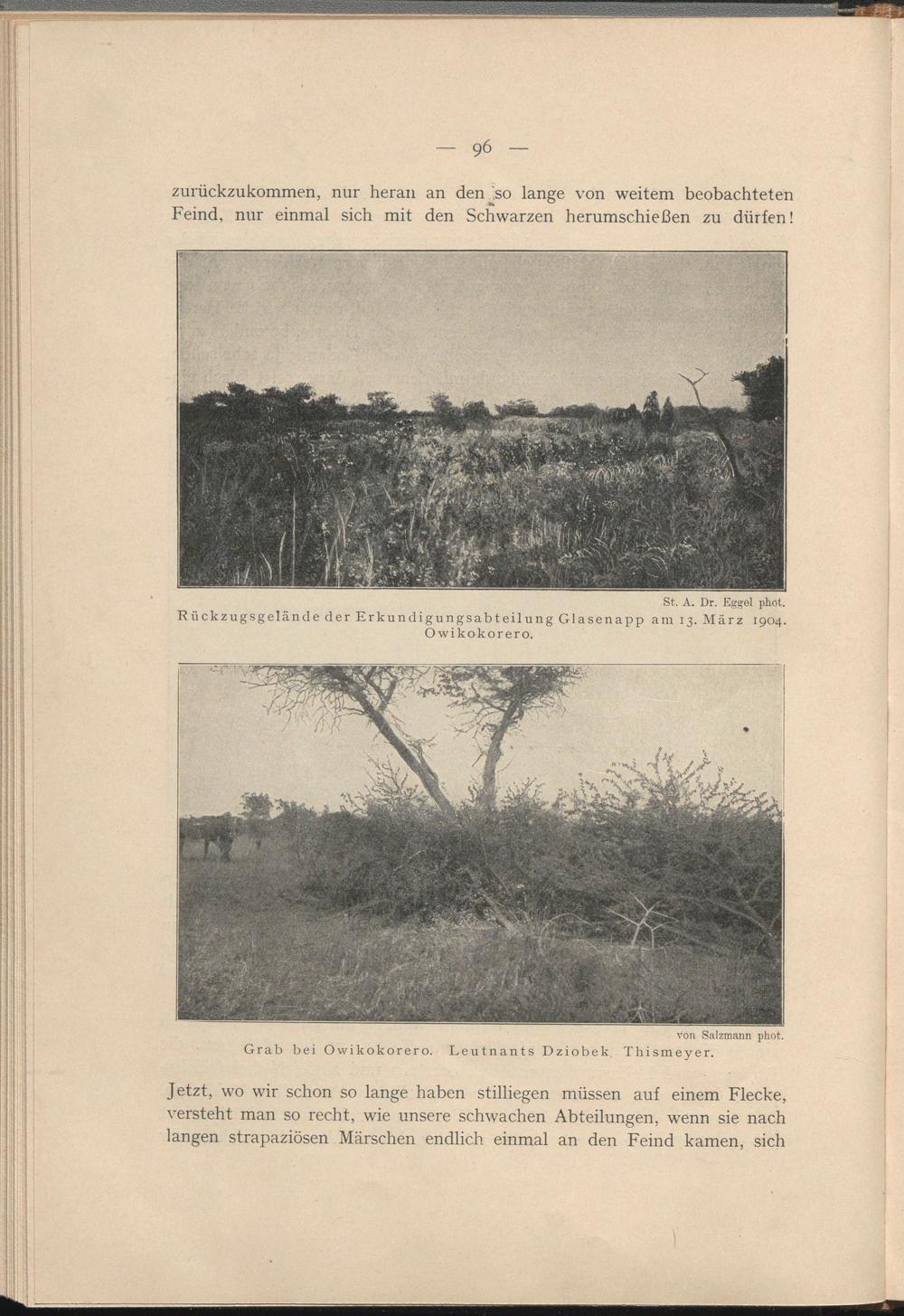 zurückzukommen, nur heran an den .so lange von weitem beobachteten Feind, nur einmal sich mit den Schwarzen herumschießen zu dürfen!