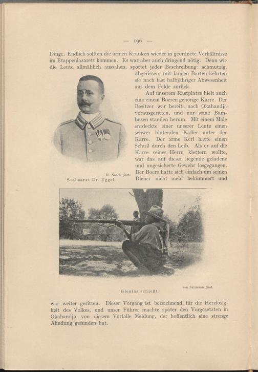 war weiter geritten. Dieser Vorgang ist bezeichnend für die Herzlosigkeit des Volkes, und unser Führer machte später den Vorgesetzten in Okahandja von diesem Vorfälle Meldung, der hoffentlich eine strenge Ahndung gefunden hat.