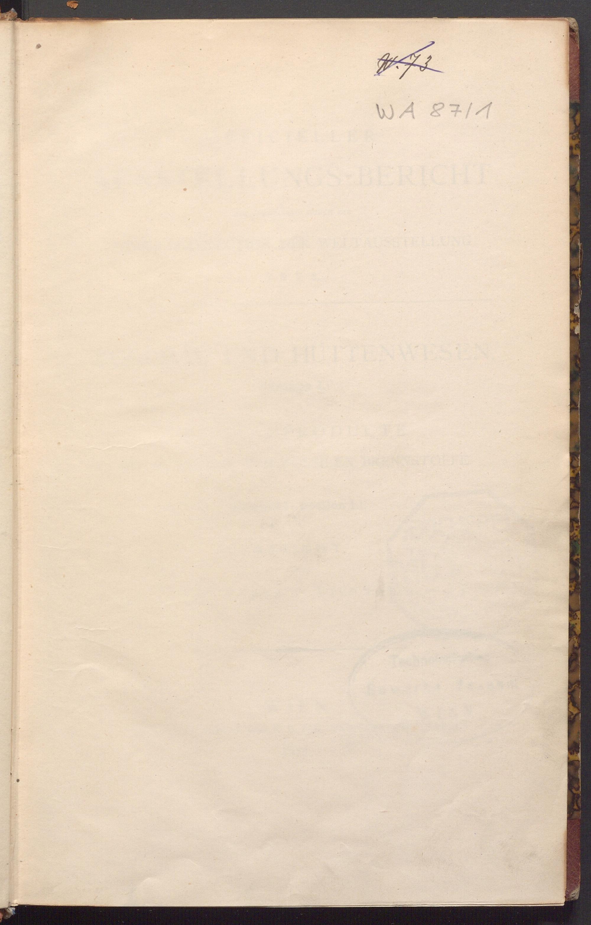 BIBL-WA87-1: Gruppe I: Bergbau und Hüttenwesen ; Gruppe II: Land- und Forstwirtschaft, Wein-, Obst- und Gartenbau