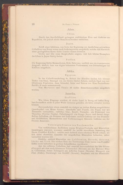 Die Regierung ftellte Marmorforten, Erze, Salze aus; endlich war ein transparenter Aragonit, ähnlich dem von Algier bekannten Vorkommen, von Dfchufchegan bei Kafchan ausgeftellt.