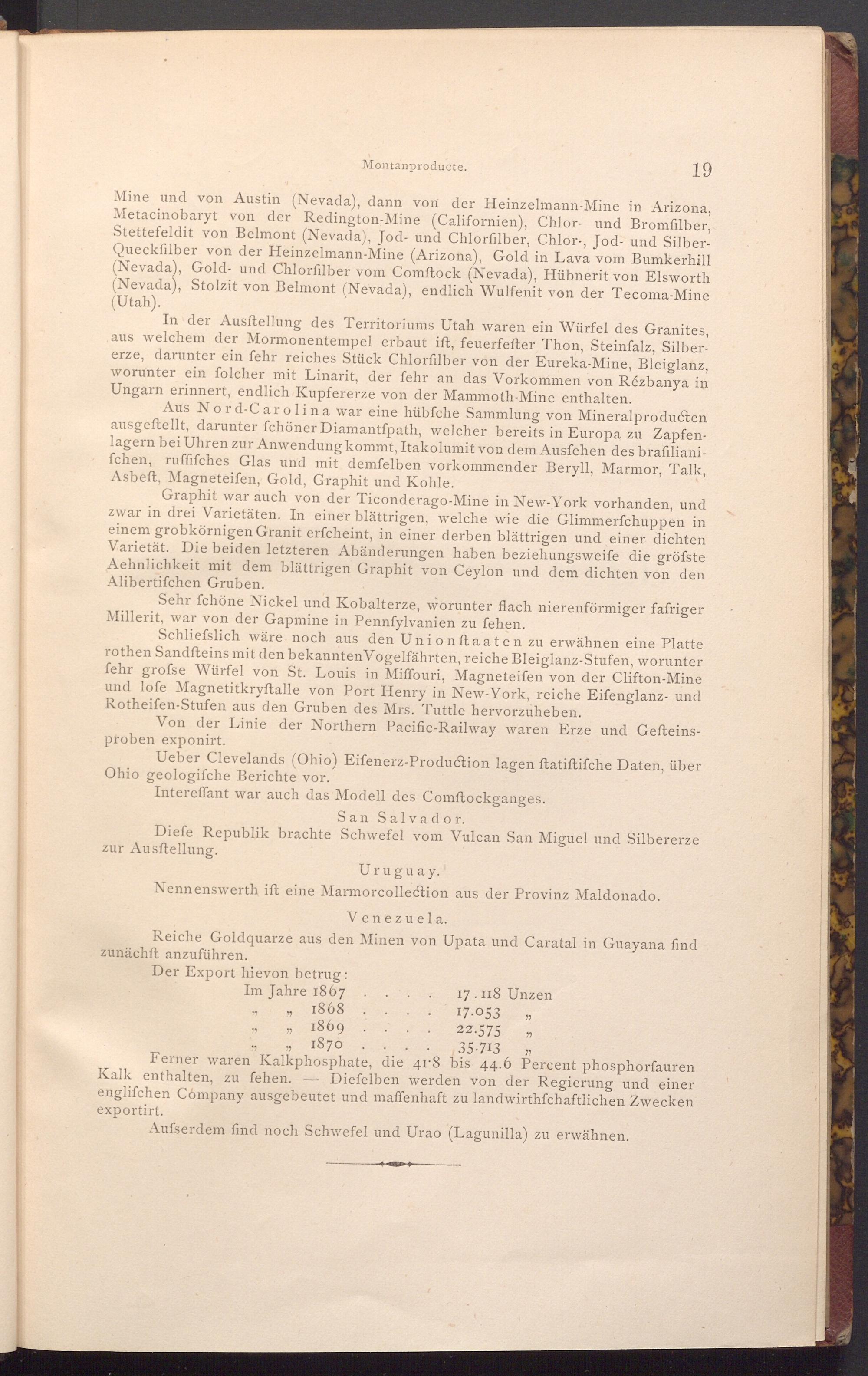 Reiche Goldquarze aus den Minen von Upata und Caratal in Guayana find zunächft anzuführen.