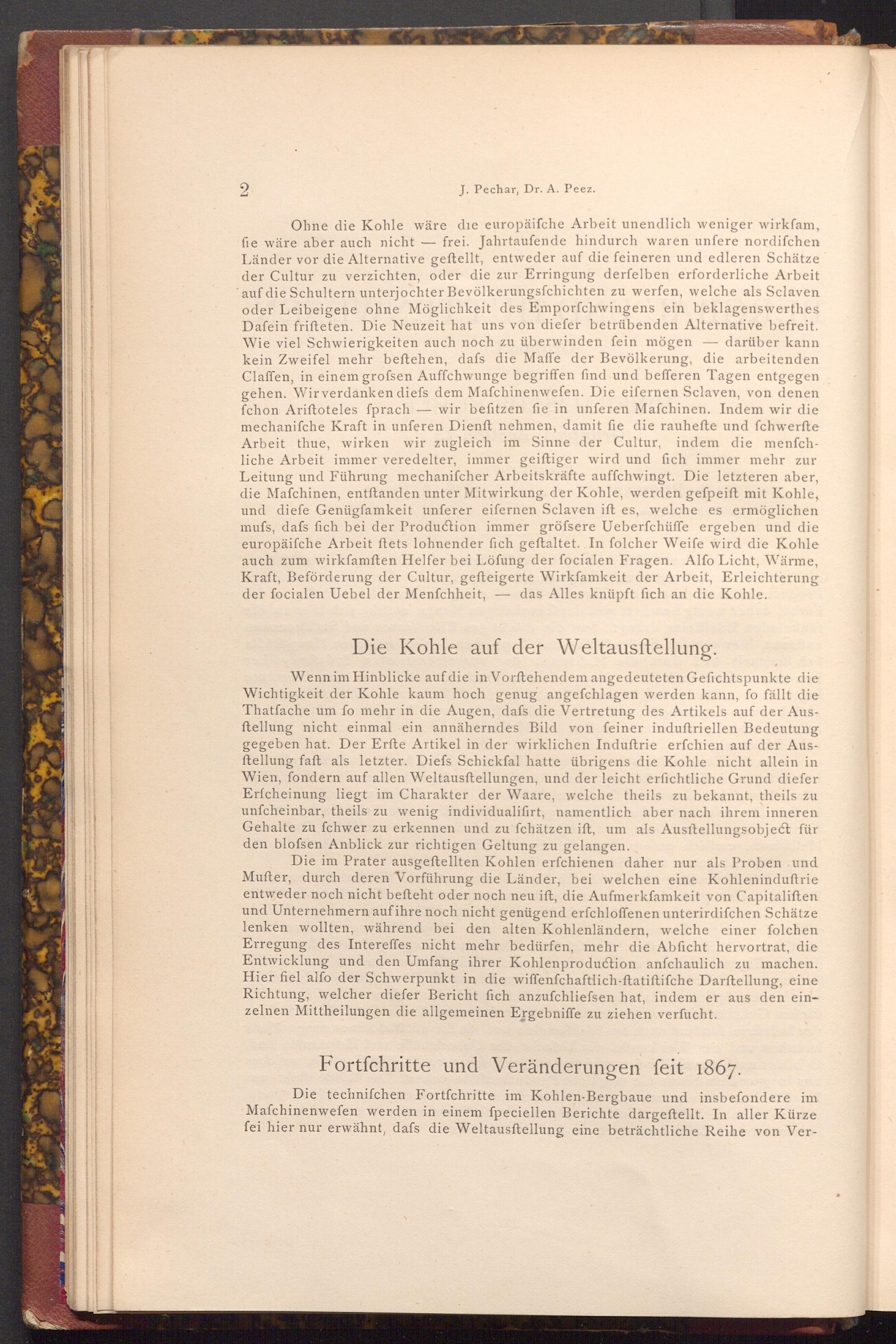 Die techniſchen Fortfchritte im Kohlen- Bergbaue und insbefondere im Mafchinenwefen werden in einem fpeciellen Berichte dargestellt. In aller Kürze fei hier nur erwähnt, dafs die Weltausftellung eine beträchtliche Reihe von Ver