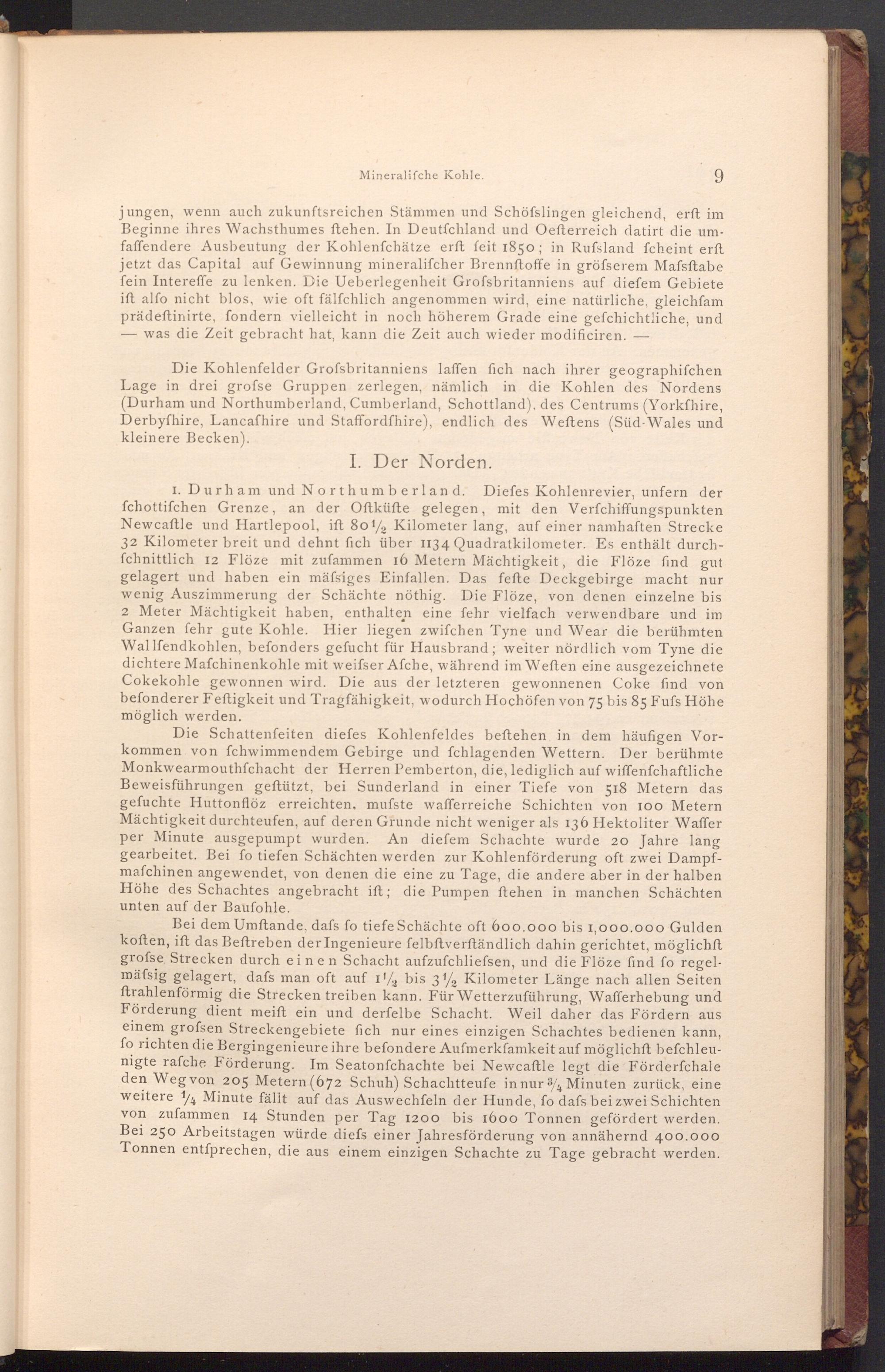 Die Kohlenfelder Grofsbritanniens laffen fich nach ihrer geographifchen Lage in drei grofse Gruppen zerlegen, nämlich in die Kohlen des Nordens ( Durham und Northumberland, Cumberland, Schottland), des Centrums( Yorkſhire, Derbyshire, Lancaſhire und Staffordſhire), endlich des Weftens( Süd- Wales und kleinere Becken).
