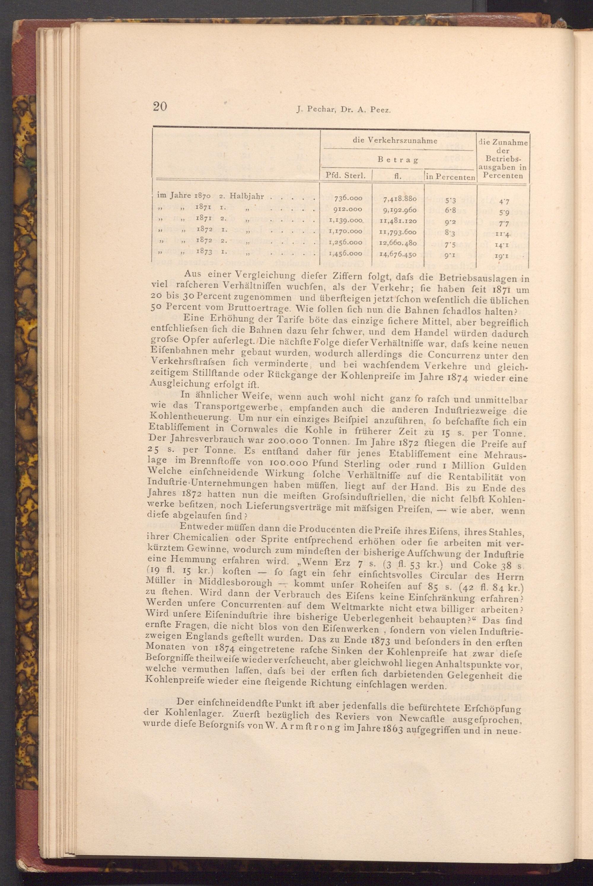 In ähnlicher Weife, wenn auch wohl nicht ganz fo rafch und unmittelbar wie das Transportgewerbe, empfanden auch die anderen Induftriezweige die Kohlentheuerung. Um nur ein einziges Beiſpiel anzuführen, fo befchaffte fich ein Etabliffement in Cornwales die Kohle in früherer Zeit zu 15 s. per Tonne. Der Jahresverbrauch war 200.000 Tonnen. Im Jahre 1872 ftiegen die Preife auf 25 s. per Tonne. Es entſtand daher für jenes Etabliffement eine Mehrauslage im Brennftoffe von 100.000 Pfund Sterling oder rund 1 Million Gulden Welche einfchneidende Wirkung folche Verhältniffe auf die Rentabilität von Induftrie Unternehmungen haben müffen, liegt auf der Hand. Bis zu Ende des Jahres 1872 hatten nun die meiften Grofsinduftriellen, die nicht felbft Kohlenwerke befitzen, noch Lieferungsverträge mit mäfsigen Preifen, wie aber, wenn diefe abgelaufen find?