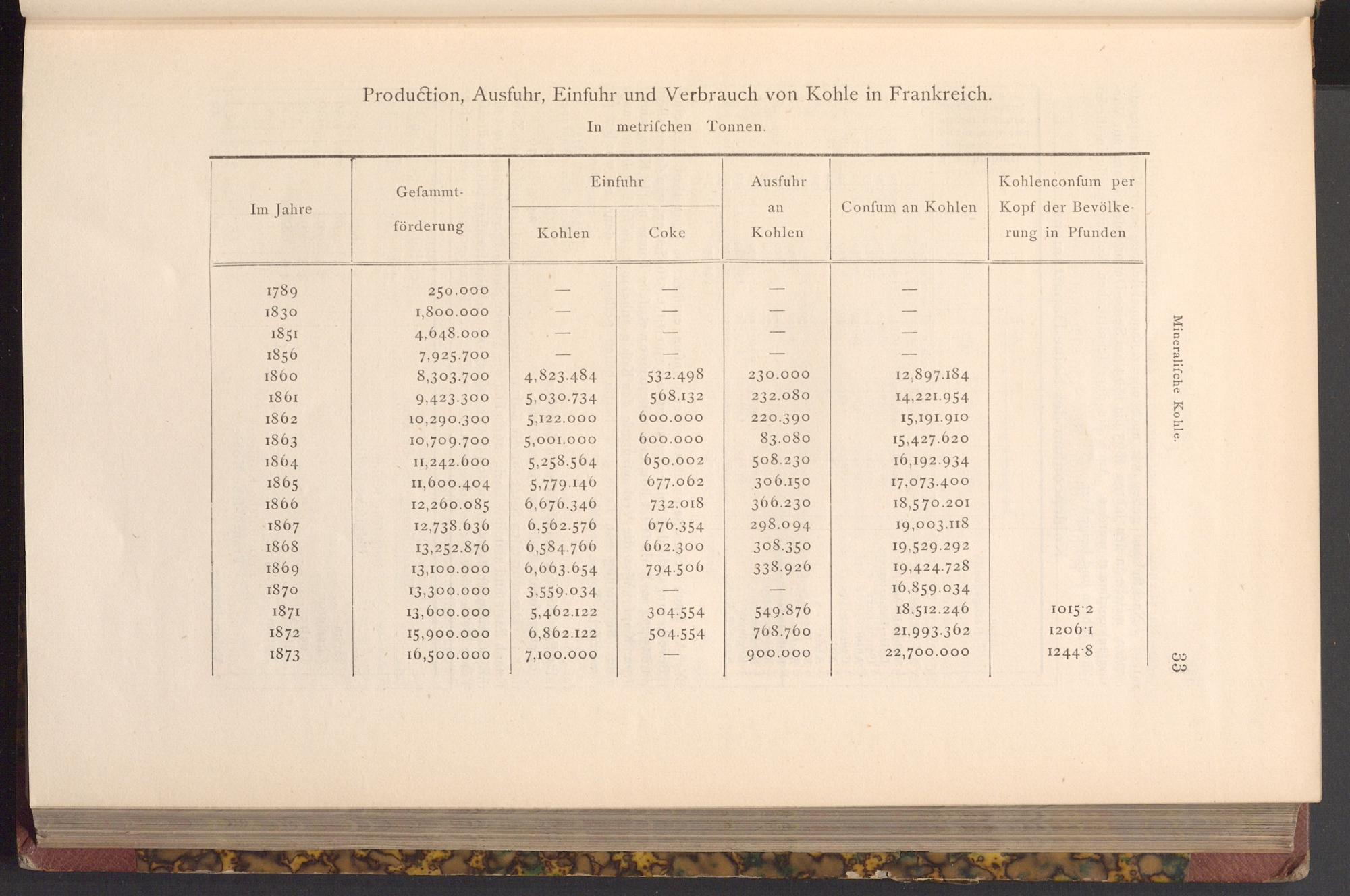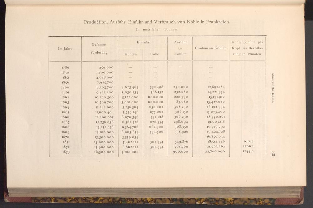 Production, Ausfuhr, Einfuhr und Verbrauch von Kohle in Frankreich.