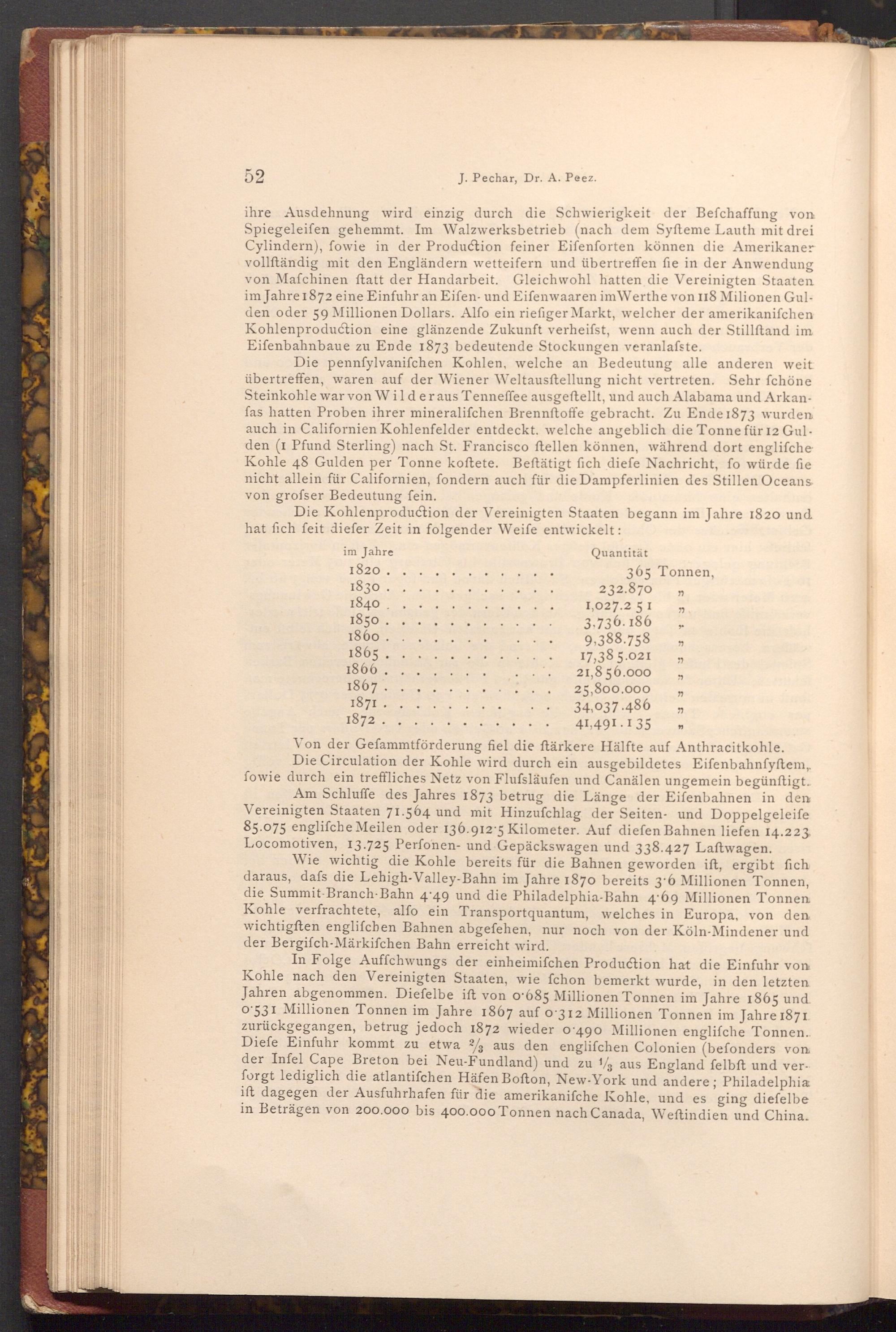 Die Kohlenproduction der Vereinigten Staaten begann im Jahre 1820 und hat fich feit diefer Zeit in folgender Weife entwickelt:
