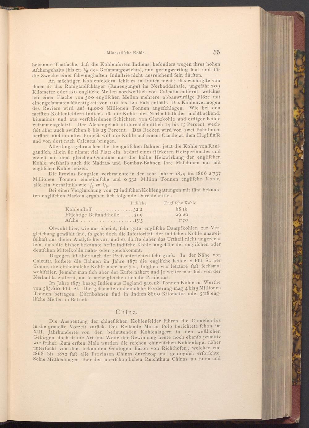Die Provinz Bengalen verbrauchte in den acht Jahren 1859 bis 1866 2.737 Millionen Tonnen einheimifche und 0.332 Million Tonnen englifche Kohle, alfo ein Verhältnifs wie 8, zu 19.