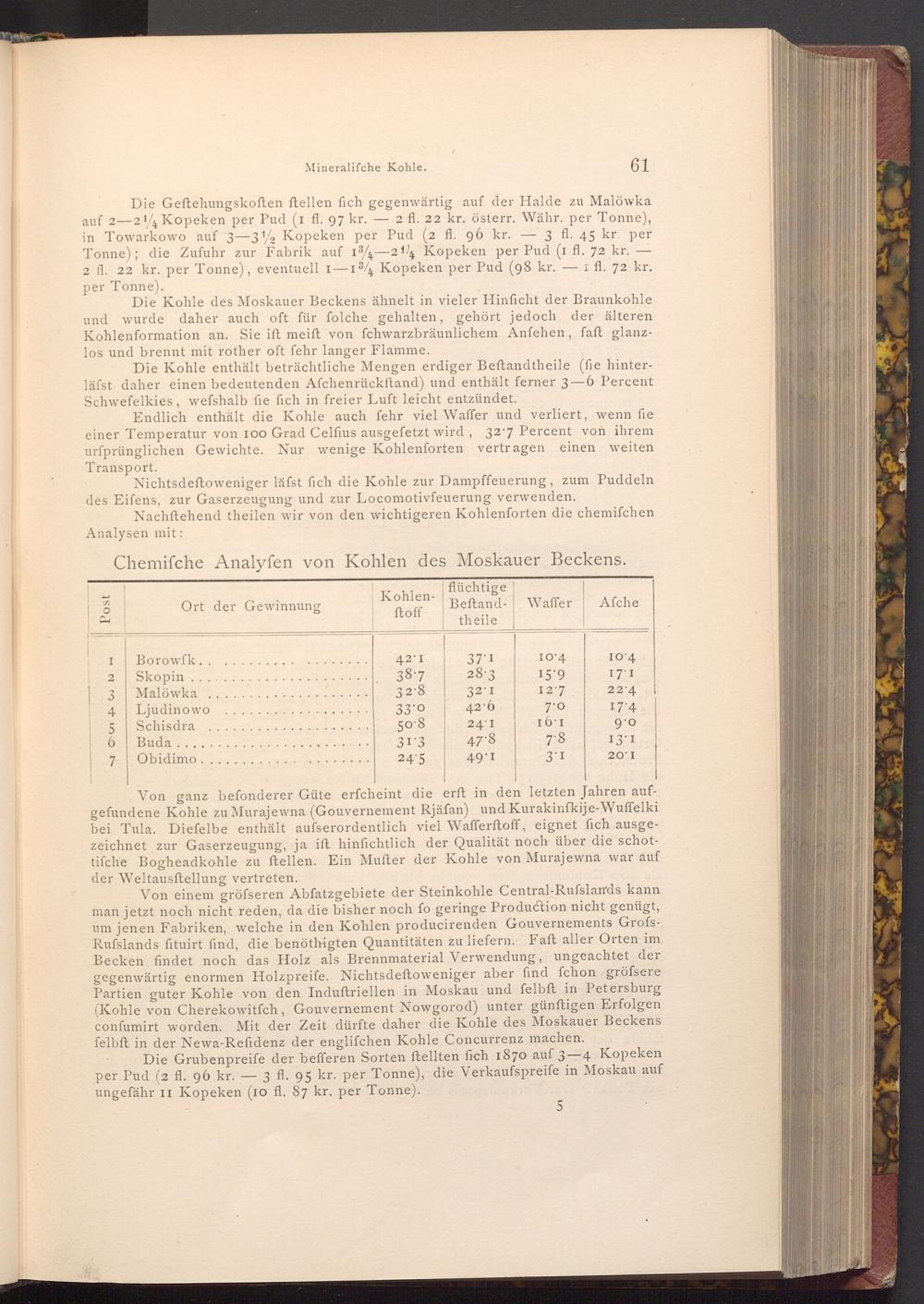 Chemifche Analyfen von Kohlen des Moskauer Beckens.