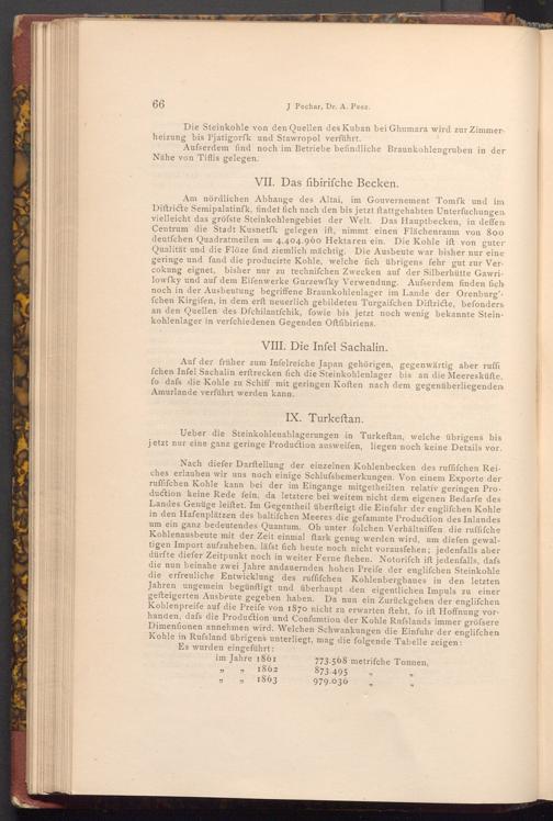 Ueber die Steinkohlenablagerungen in Turkeftan, welche übrigens bis jetzt nur eine ganz geringe Production ausweifen, liegen noch keine Details vor.