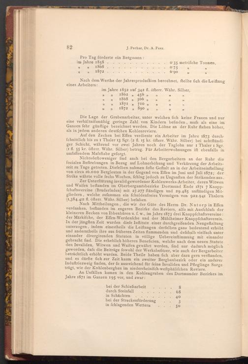 Auf den Zechen bei Effen verdiente ein Arbeiter im Jahre 1873 durchfchnittlich bis zu 1 Thaler 13 Sgr.( 2 fl. 15 kr. öfterr. Währ. Silber) bei achtftündiger Schicht, während vor zwei Jahren noch der Taglohn nur I Thaler I Sgr. ( 1 fl. 55 kr. öfterr. Währ. Silber) betrug. Für Arbeiterwohnungen ift ebenfalls in umfaffendem Mafsftabe geforgt. Nichtsdeftoweniger find auch bei den Bergarbeitern an der Ruhr die focialen Beftrebungen in Bezug auf Lohnerhöhung und Verkürzung der Arbeitszeit zu Tage getreten. Diefelben nahmen fefte Geftalt an in der Arbeitseinstellung von circa 16.000 Bergleuten in der Gegend von Effen im Juni und Juli 1872; der Strike währte volle fechs Wochen, fchlug jedoch zu Ungunften der Strikenden aus.
