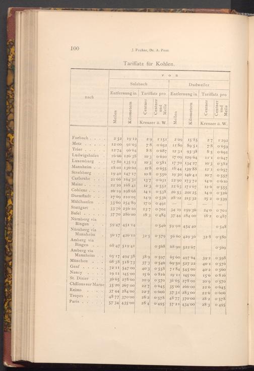 Entfernung in Tariffatz pro Entfernung in Tariffatz pro
