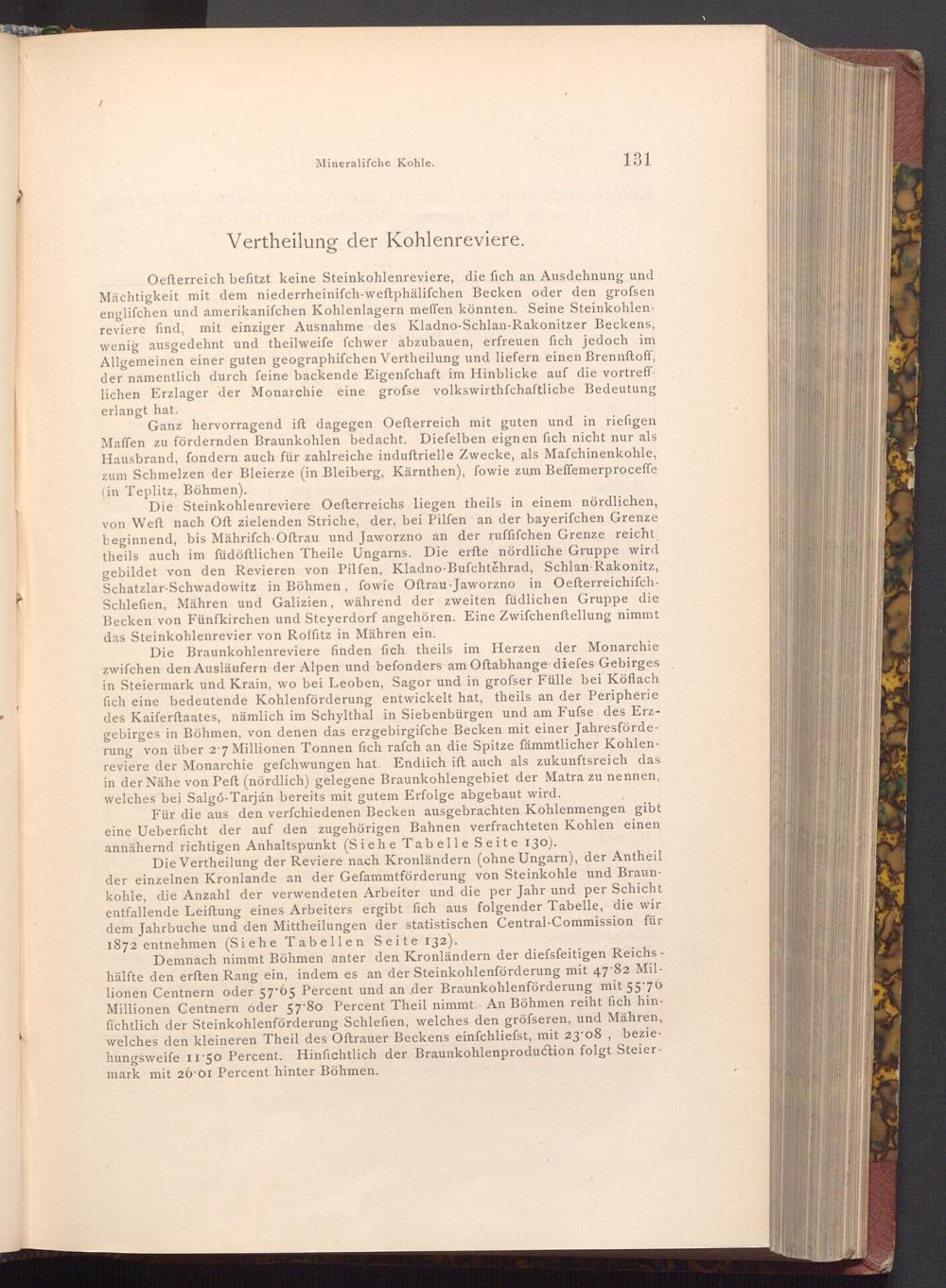 Ganz hervorragend ift dagegen Oefterreich mit guten und in riefigen Maffen zu fördernden Braunkohlen bedacht. Diefelben eignen fich nicht nur als Hausbrand, fondern auch für zahlreiche induftrielle Zwecke, als Mafchinenkohle, zum Schmelzen der Bleierze( in Bleiberg, Kärnthen), fowie zum Beffemerproceffe ( in Teplitz, Böhmen).