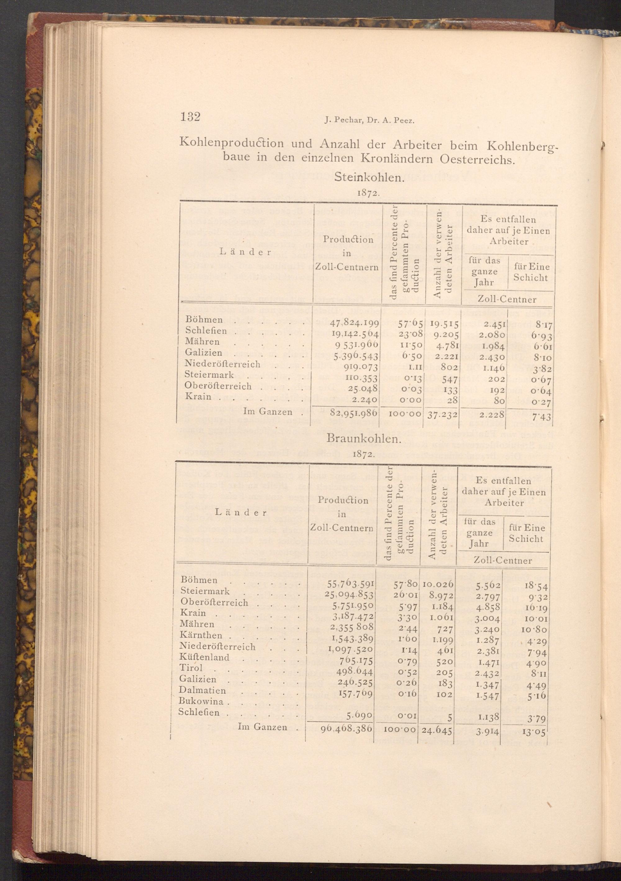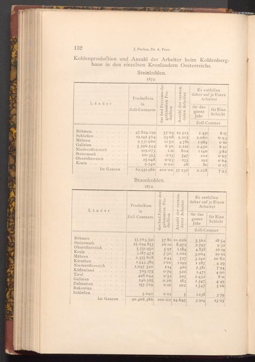 Kohlenproduction und Anzahl der Arbeiter beim Kohlenbergbaue in den einzelnen Kronländern Oesterreichs.