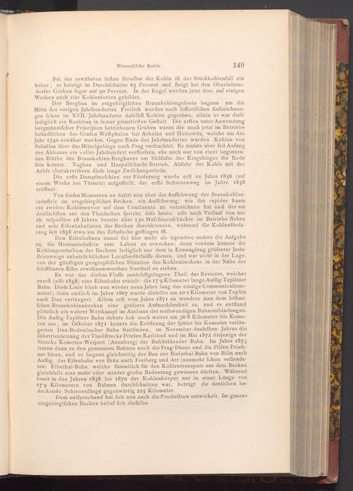 Die erfte Dampfmafchine zur Förderung wurde erft im Jahre 1856( auf einem Werke bei Türmitz) aufgeftellt, der erfte Schienenweg im Jahre 1858 eröffnet.