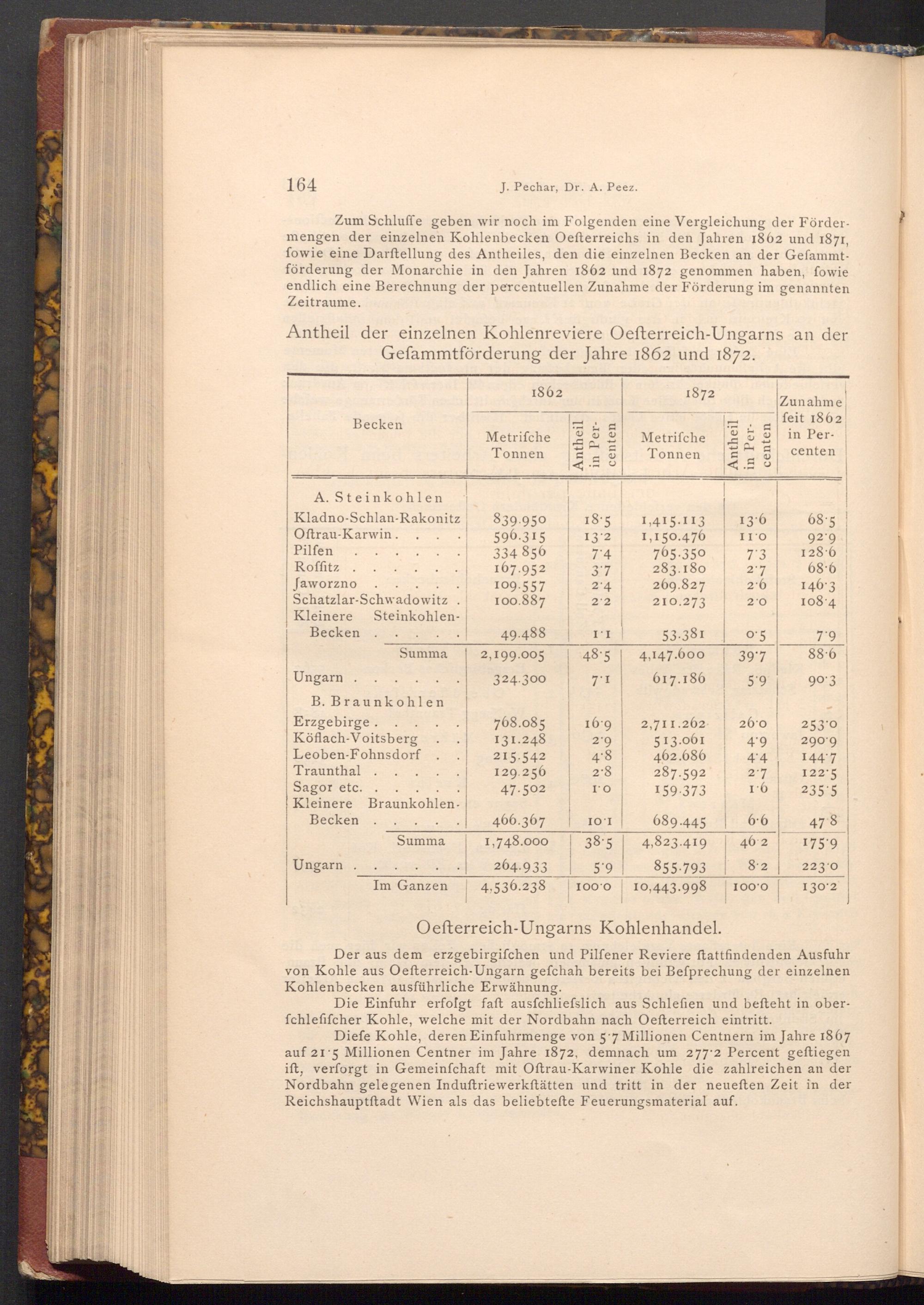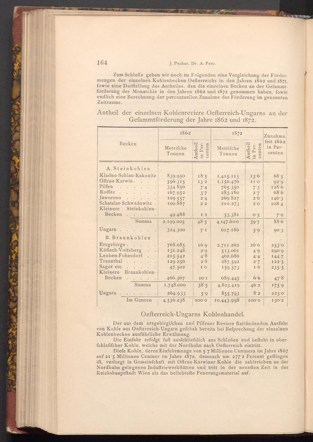 Antheil der einzelnen Kohlenreviere Oefterreich- Ungarns an der Gefammtförderung der Jahre 1862 und 1872.