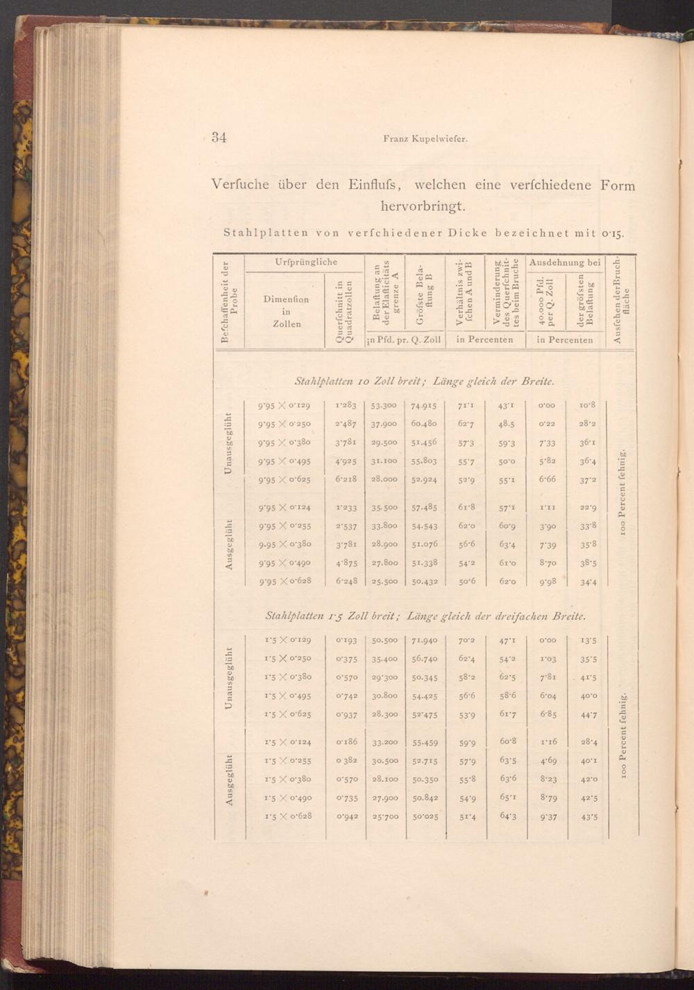 Stahlplatten 15 Zoll breit; Länge gleich der dreifachen Breite.