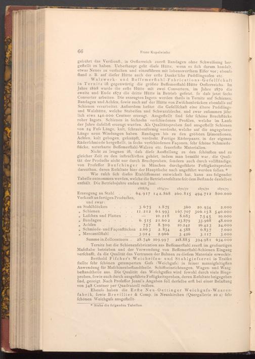 gebührt das Verdienft, in Oefterreich zuerft Bandagen ohne Schweifsung hergeftellt zu haben. Ueberhaupt geht diefe Hütte, wenn es fich darum handelt, etwas Neues zu verfuchen und einzuführen mit lobenswerthem Eifer vor; ebenfo ftand z. B. auf diefer Hütte auch der erfte Danks'fche Puddlingsofen etc.