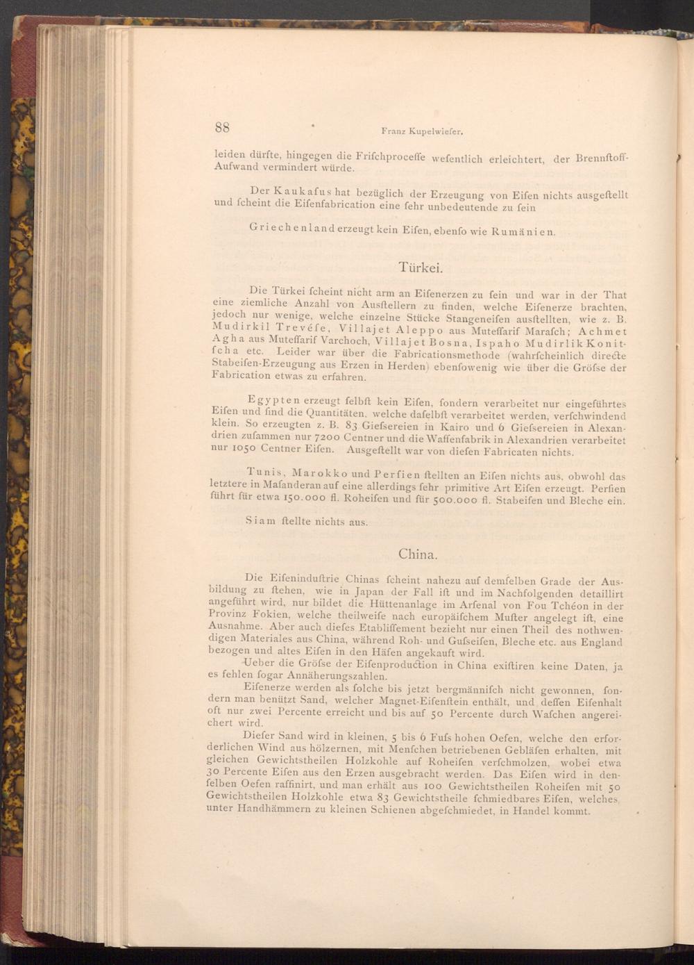 Ueber die Gröfse der Eifenproduction in China exiftiren keine Daten, ja es fehlen fogar Annäherungszahlen.