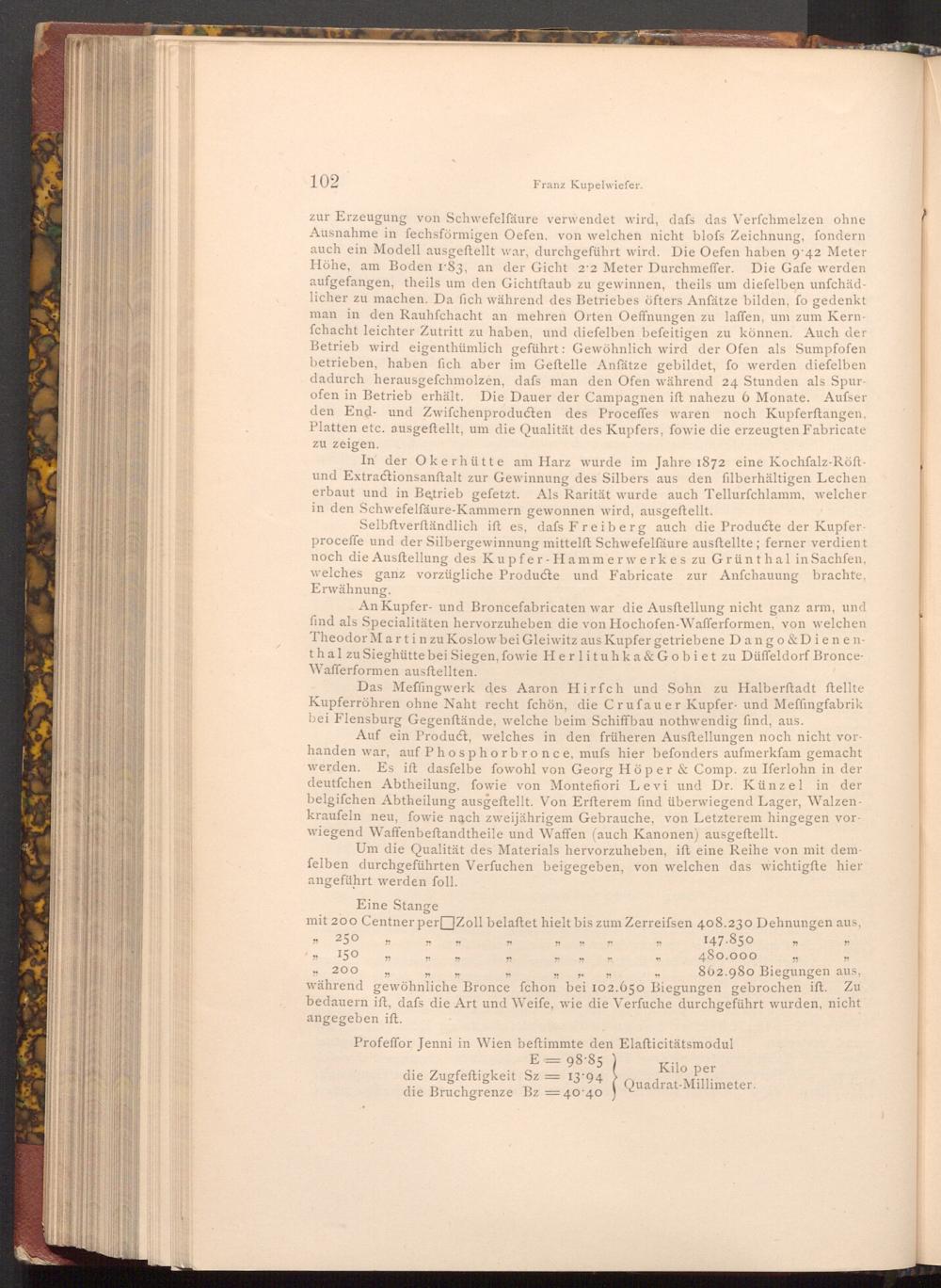 Profeffor Jenni in Wien beftimmte den Elafticitätsmodul E= 98.85