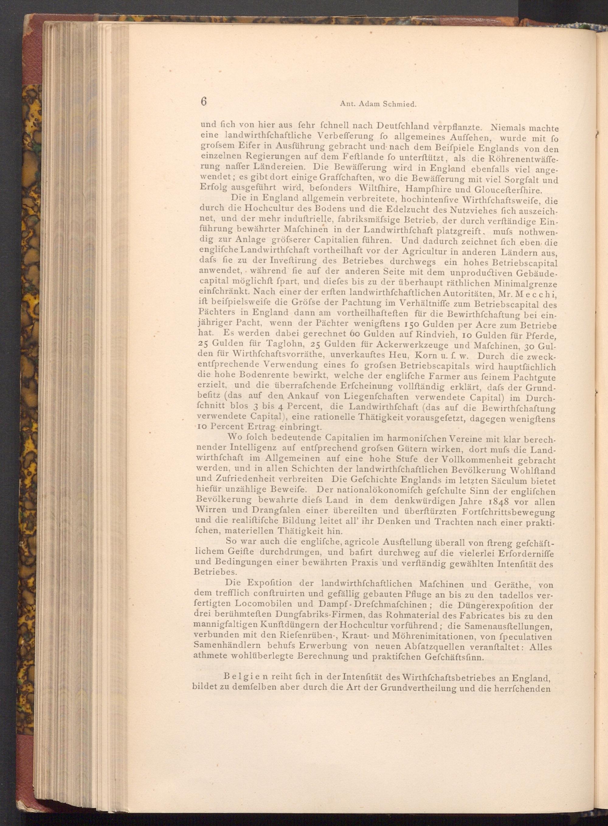 Wo folch bedeutende Capitalien im harmonifchen Vereine mit klar berechnender Intelligenz auf entſprechend grofsen Gütern wirken, dort mufs die Landwirthschaft im Allgemeinen auf eine hohe Stufe der Vollkommenheit gebracht werden, und in allen Schichten der landwirthschaftlichen Bevölkerung Wohlftand und Zufriedenheit verbreiten Die Gefchichte Englands im letzten Säculum bietet hiefür unzählige Beweife. Der nationalökonomifch gefchulte Sinn der engliſchen Bevölkerung bewahrte diefs Land in dem denkwürdigen Jahre 1848 vor allen Wirren und Drangfalen einer übereilten und überftürzten Fortfchrittsbewegung und die realiftifche Bildung leitet all' ihr Denken und Trachten nach einer prakti fchen, materiellen Thätigkeit hin.