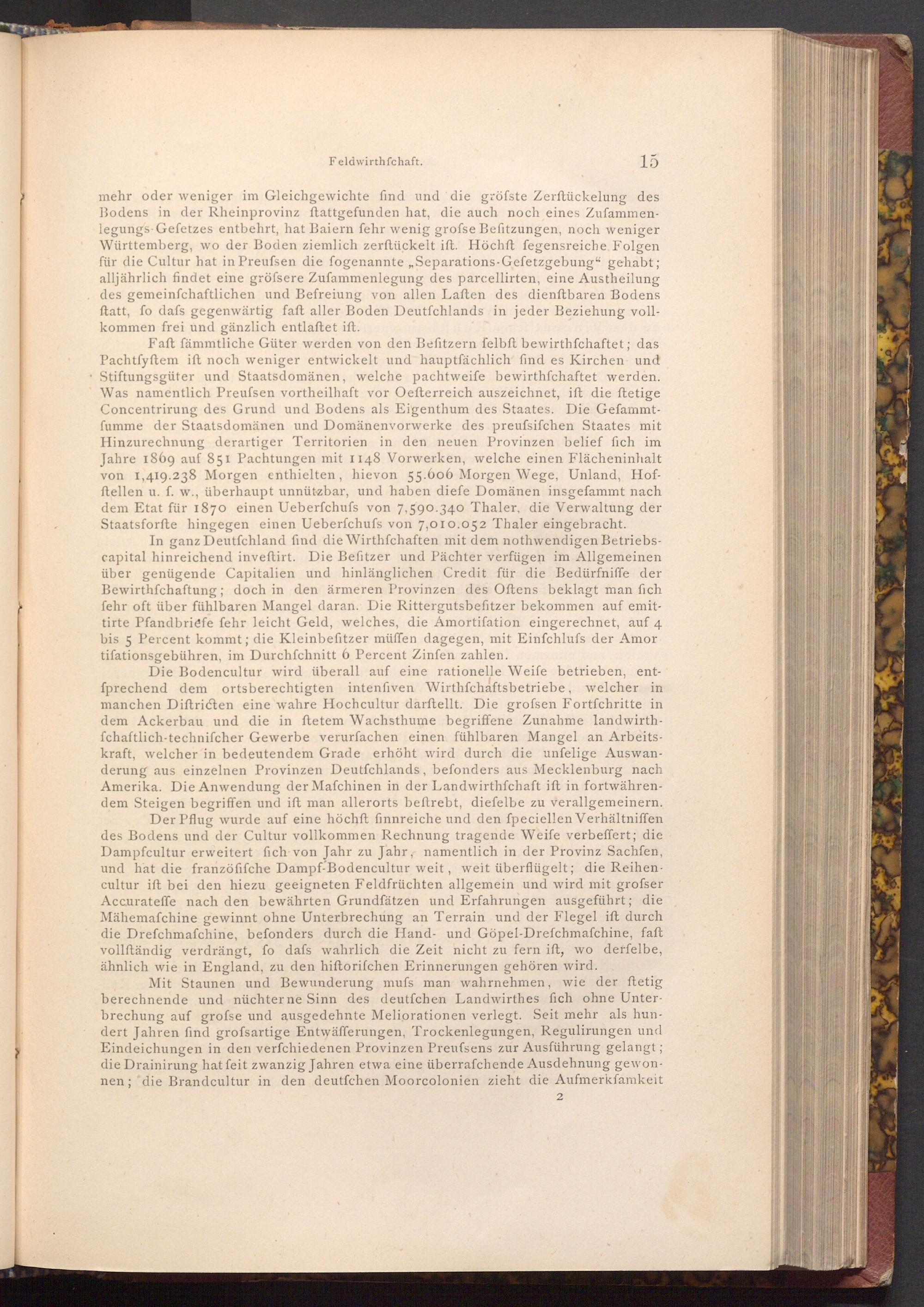 Die Bodencultur wird überall auf eine rationelle Weife betrieben, entfprechend dem ortsberechtigten intenfiven Wirthschaftsbetriebe, welcher in manchen Diftricten eine wahre Hochcultur darftellt. Die grofsen Fortfchritte in dem Ackerbau und die in ftetem Wachsthume begriffene Zunahme landwirthfchaftlich- technifcher Gewerbe verurfachen einen fühlbaren Mangel an Arbeitskraft, welcher in bedeutendem Grade erhöht wird durch die unfelige Auswanderung aus einzelnen Provinzen Deutfchlands, befonders aus Mecklenburg nach Amerika. Die Anwendung der Mafchinen in der Landwirthfchaft ift in fortwährendem Steigen begriffen und ift man allerorts beftrebt, diefelbe zu verallgemeinern.
